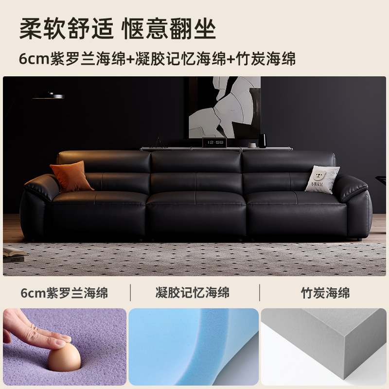 Диван Tongyute 2026, новая модель, итальянский минималистичный ретро-стиль, для гостиной, из высококачественной черной телячьей кожи.