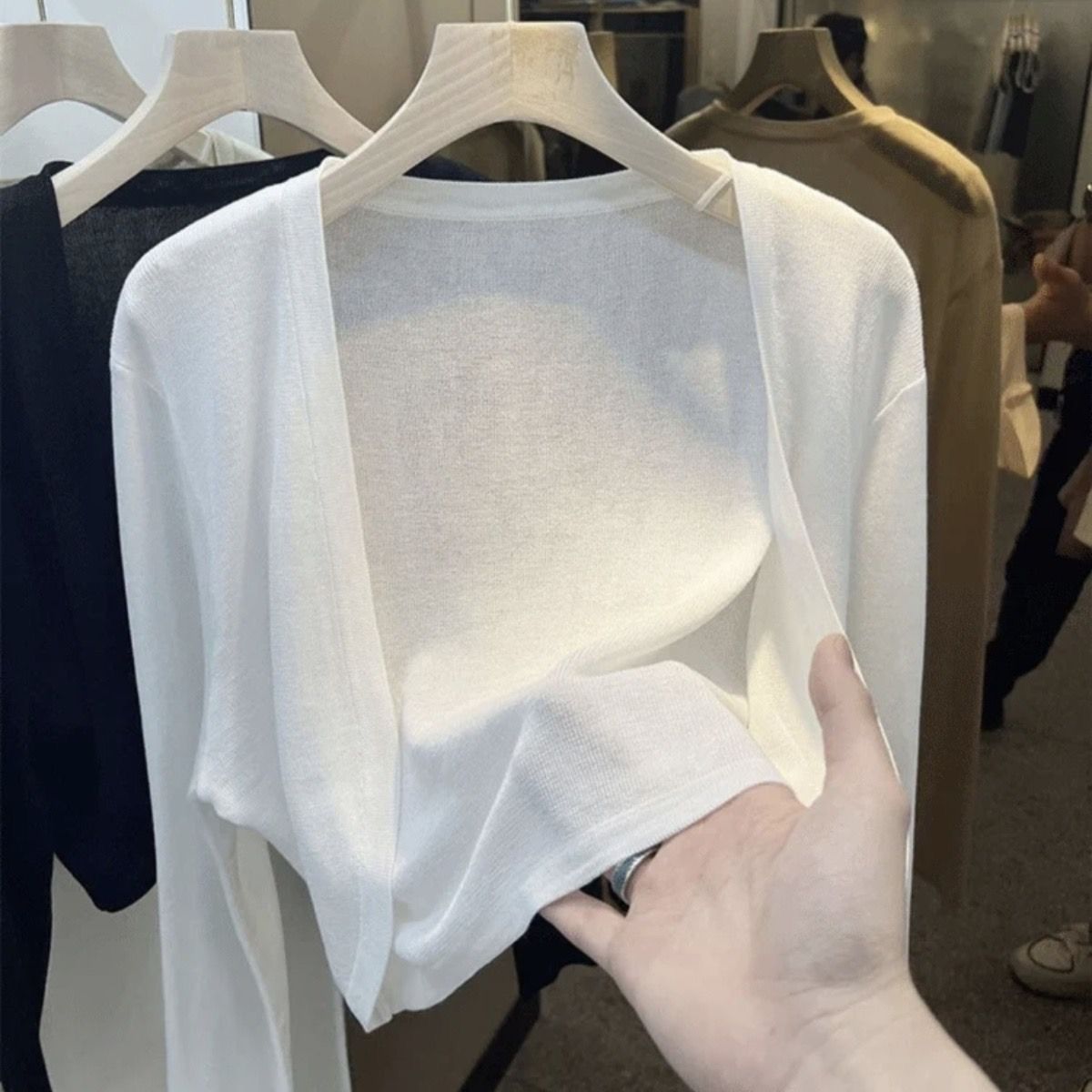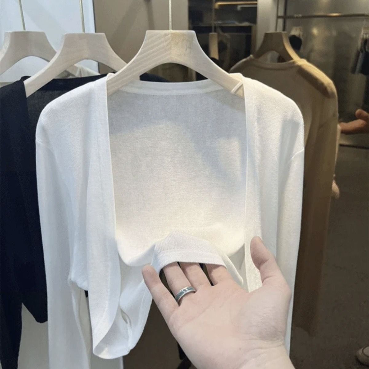 新款女士冰丝针织披肩,长袖、中袖可选。透气亲肤舒适,百搭时尚潮味十足。披肩款不限身材,遮肉显瘦,外出防晒,室内空调护肩。清凉单品值得推荐。