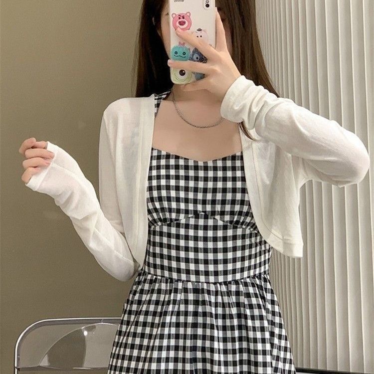 Леди новый стиль ледяной шелк вязаный платок сетка красный короткий рукав с длинными рукавами солнцезащитный свитер