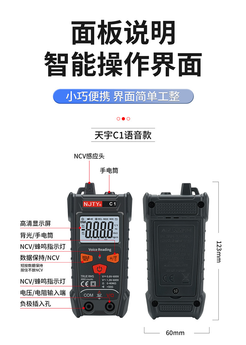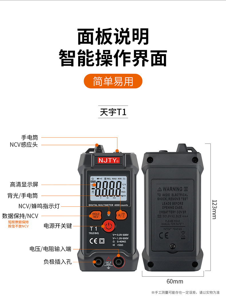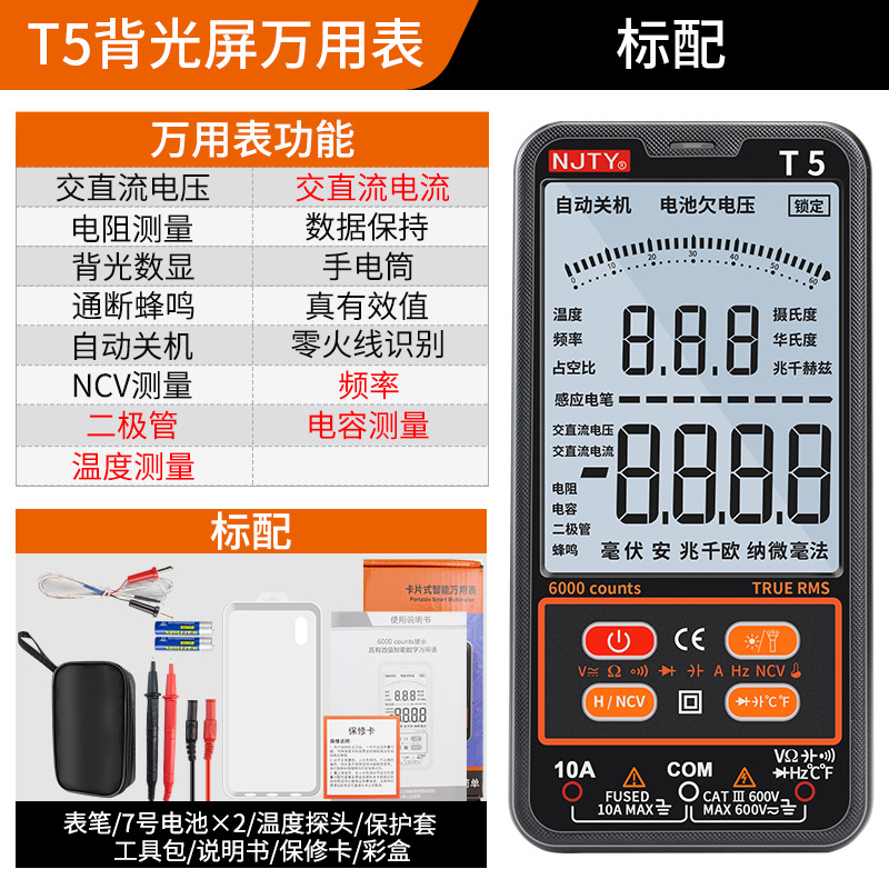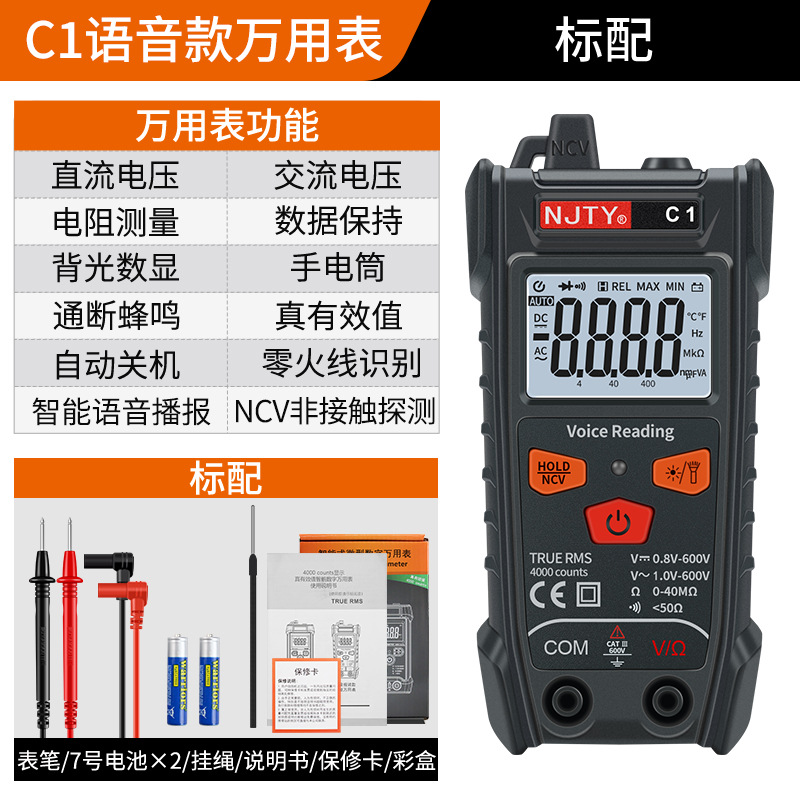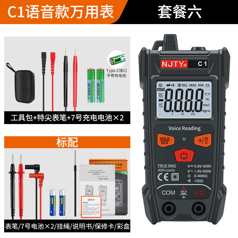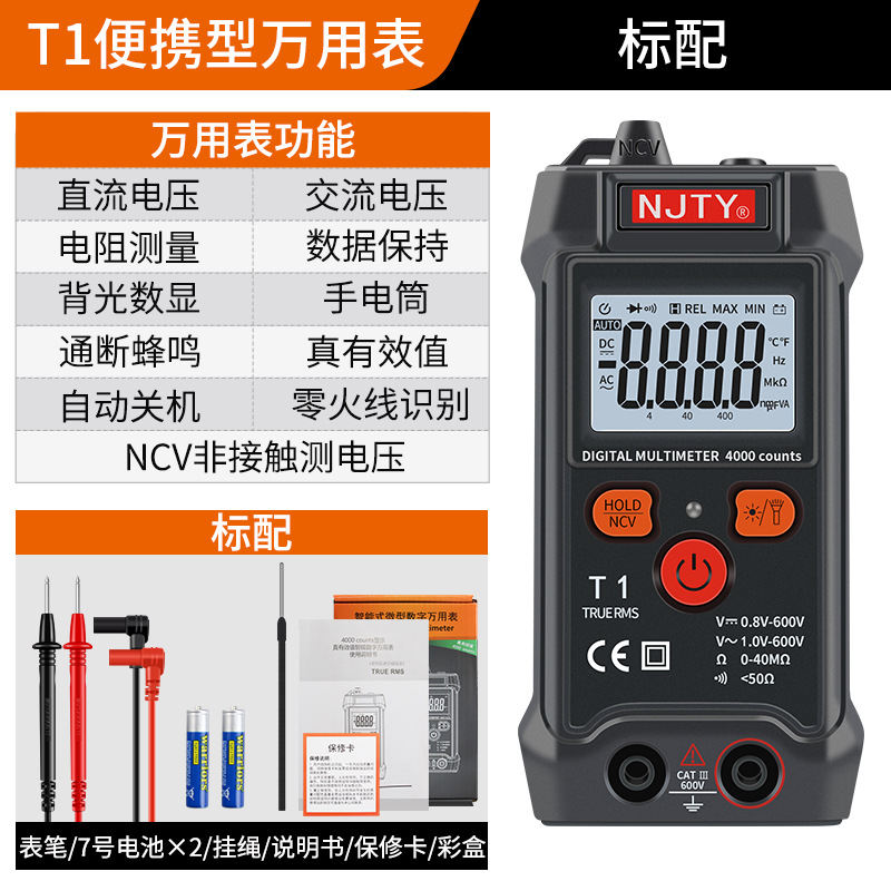 NJTY Tianyu T1 универсальный полноумный мини автоматический мультиметр без переключения T5VA Голосовая трансляция C1