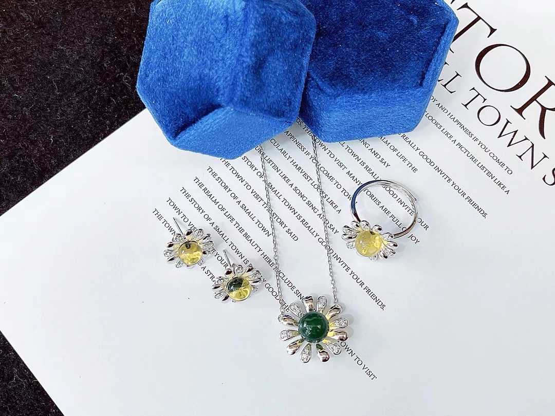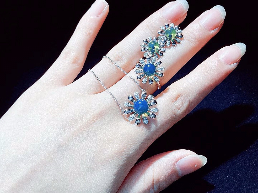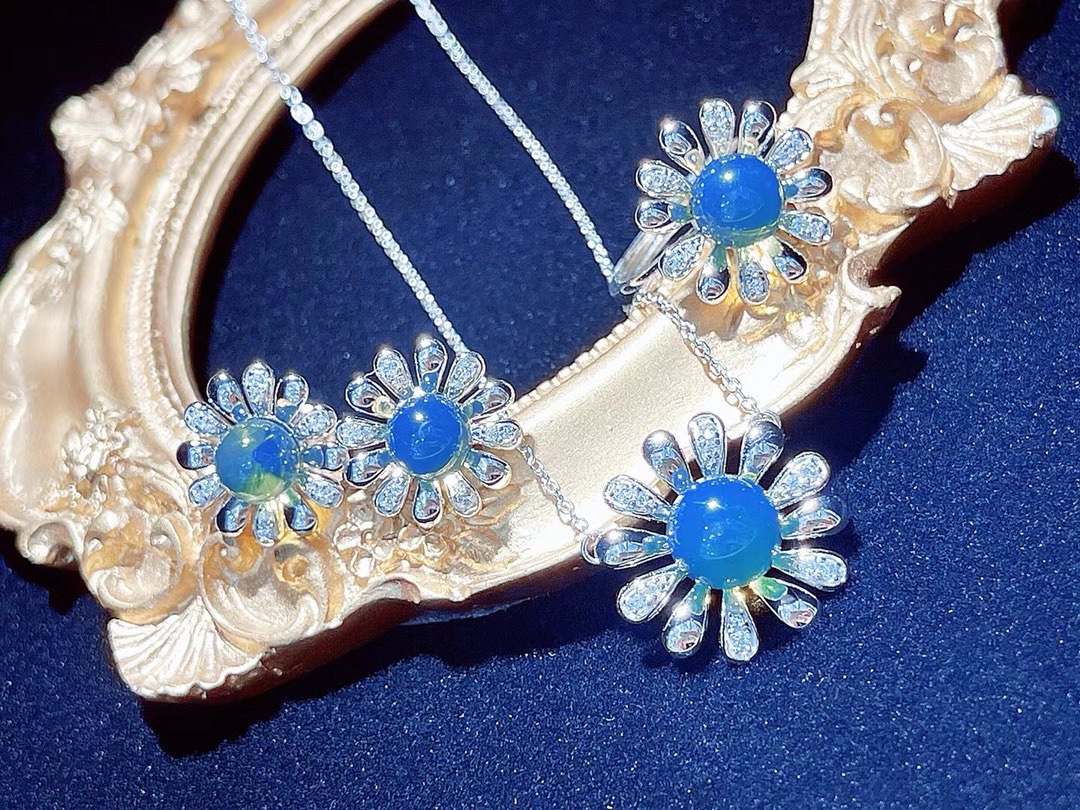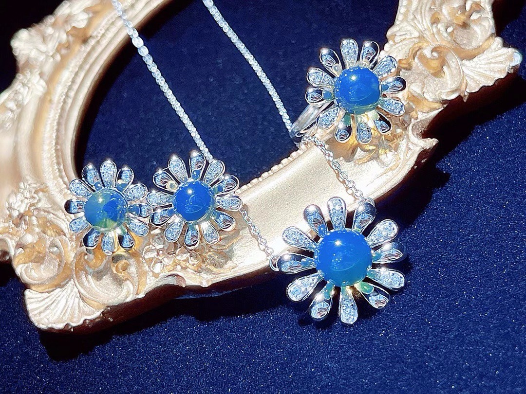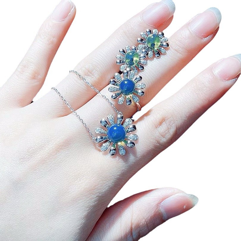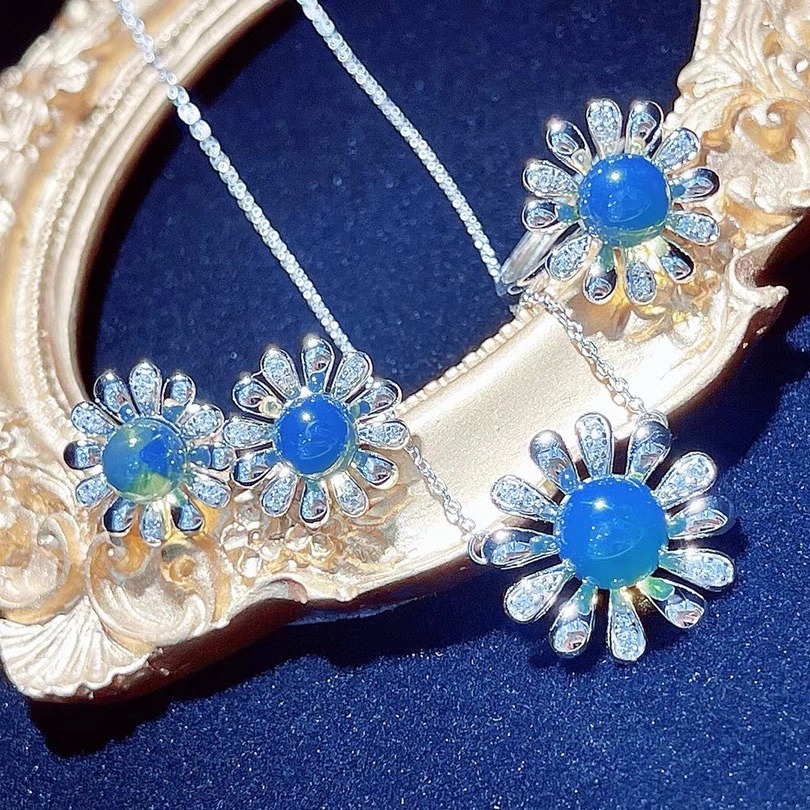 6-7-8mm Мексика Blue Paper Seiko Инкрустация S925 Серебряный набор ювелирных изделий Маленькая маргаритка простой атмосферный