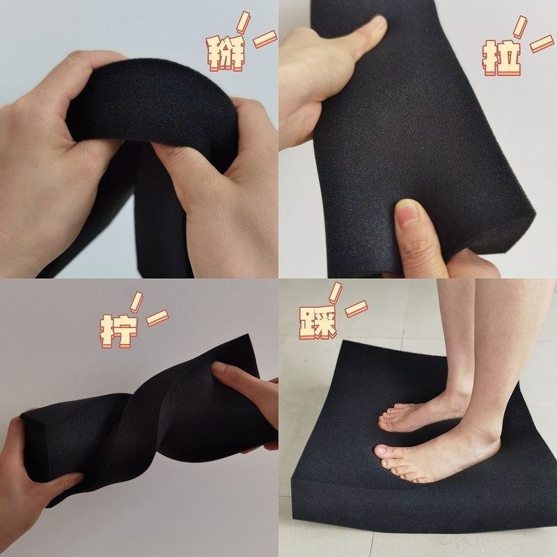 Пенопласт средней, высокой и низкой плотности, черный, утолщенный, с высокой упругостью, звукоизоляционный, амортизирующий, ударопрочный, экологически чистый и дышащий.