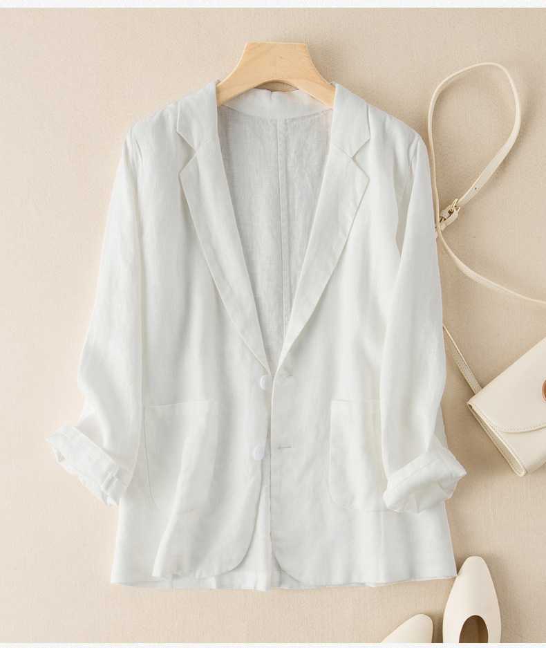 Нелюдный выстрел 2022 новый повседневный бельевой маленький костюм женский пальто с длинными рукавами тонкий хлопок конопля маленький костюм женский