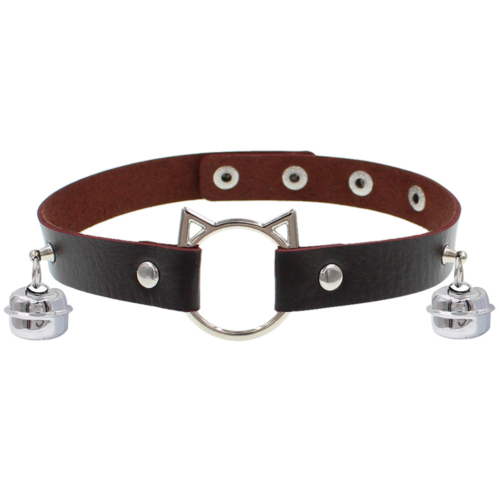 Европейская и американская мода мультфильм кошачья голова колокольчик кожаный ошейник темный панк ветер PU кожа чокер ожерелье шейный женский