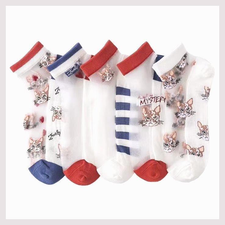 Летние стеклянные шелковые женские носки кошачие дышащие хрустальные короткие носки Rs прилив светлый рот дышащие невидимки производители оптом