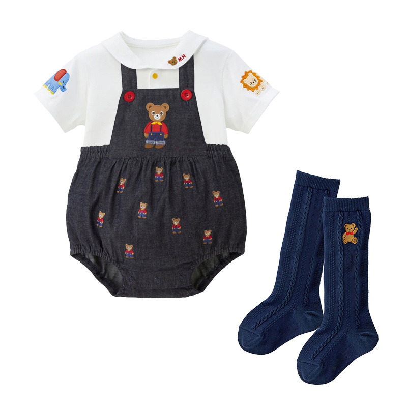 Летние рубашки на складе для мальчиков и девочек, темно-синие рубашки с длинными рукавами и воротником с рисунком медведя и вышивкой, дропшиппинг