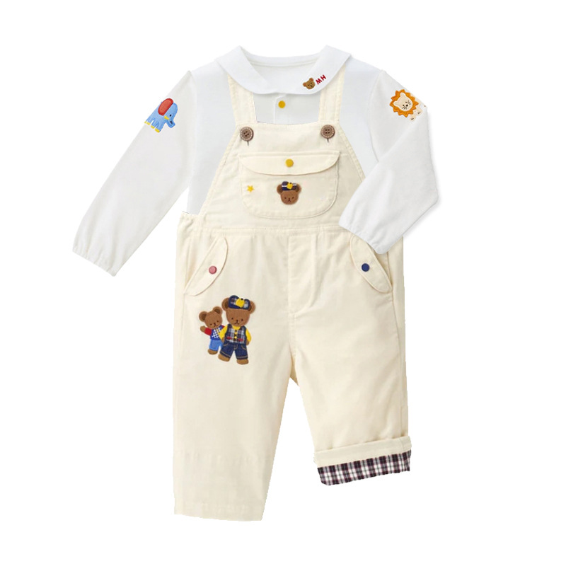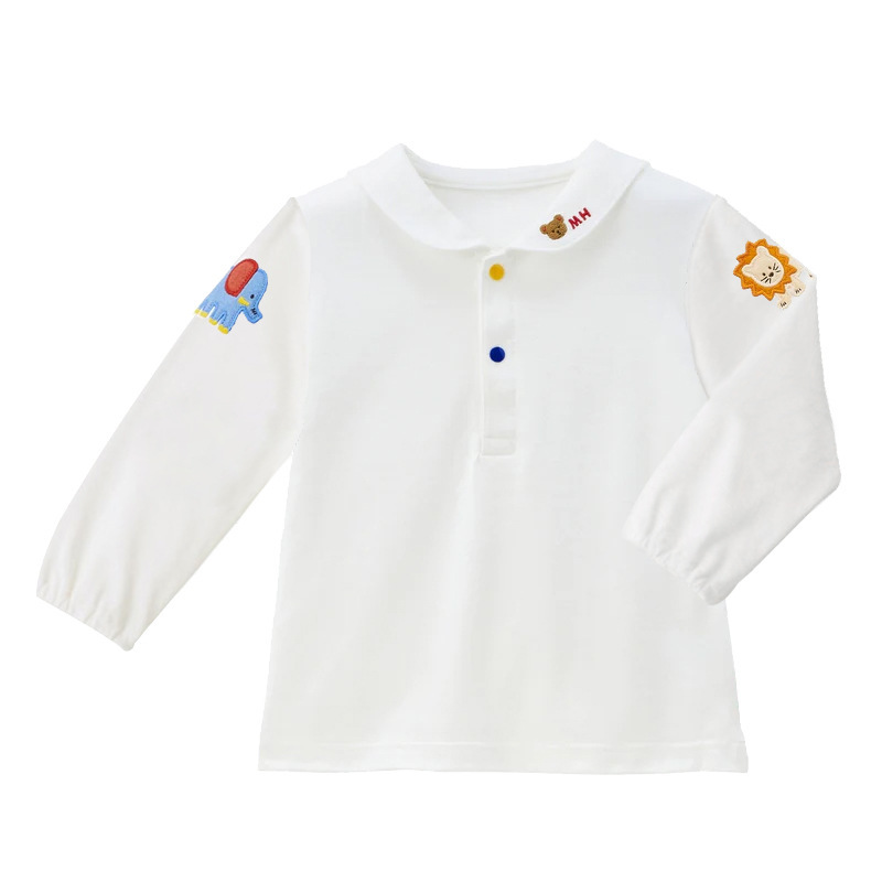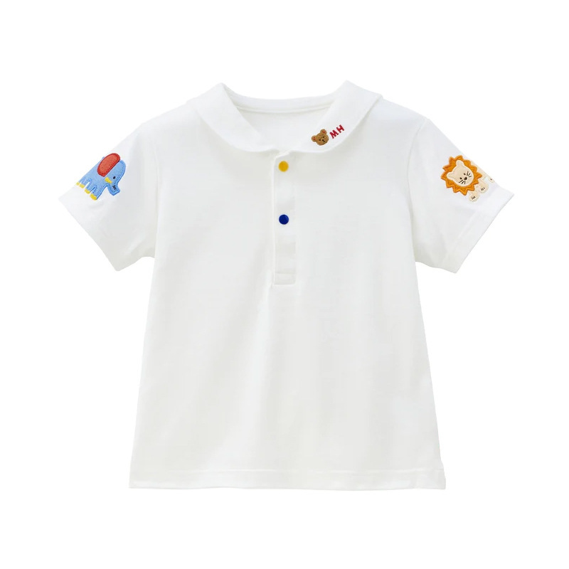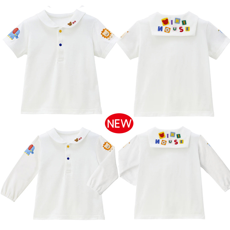 新款男女童小熊刺绣娃娃领短袖长袖衬衣