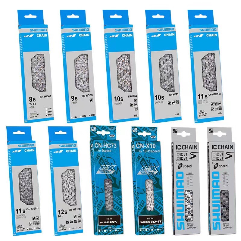8-ступенчатый IC51 серый; 8-ступенчатая IC51 гальваника; 9 Скорость 73; 10-скоростной CNX10; 8-ступенчатый HC40; 9-ступенчатый HC53; 10-ступенчатый HC54; 10-ступенчатый HC95; 11-ступенчатый HC701; 11-ступенчатый HC901; 12-ступенчатый M8100