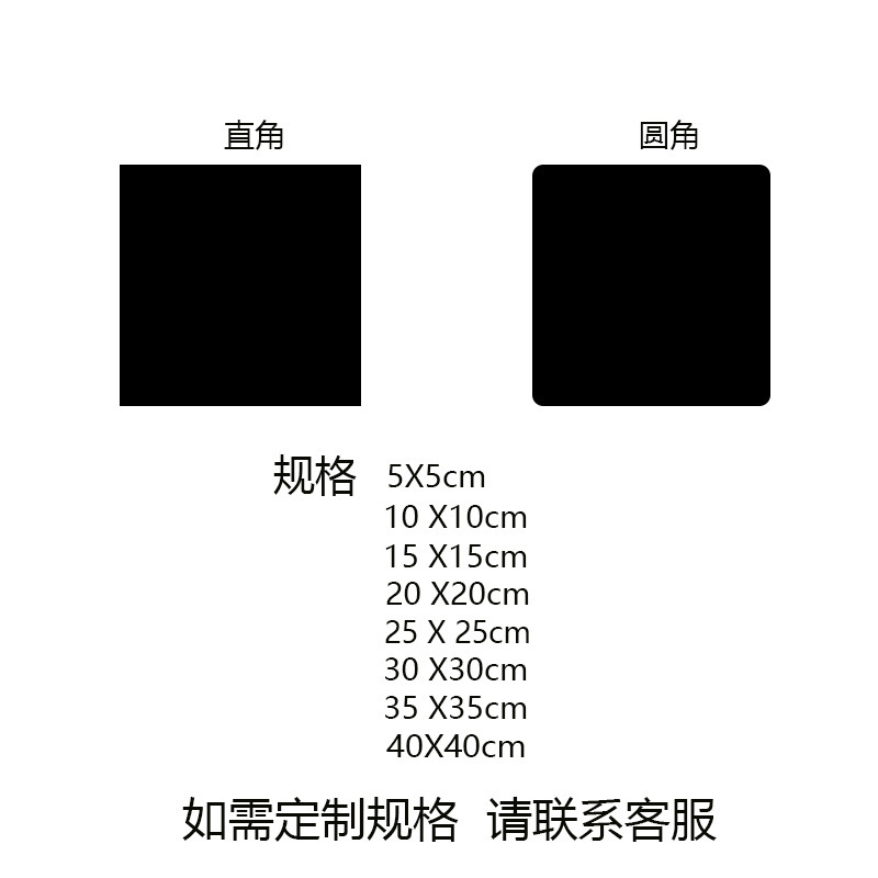 5CM*5CM; 10CM*10CM; 15CM*15CM; 20CM*20CM; 25CM*25CM; 30CM*30CM; 40CM*40CM