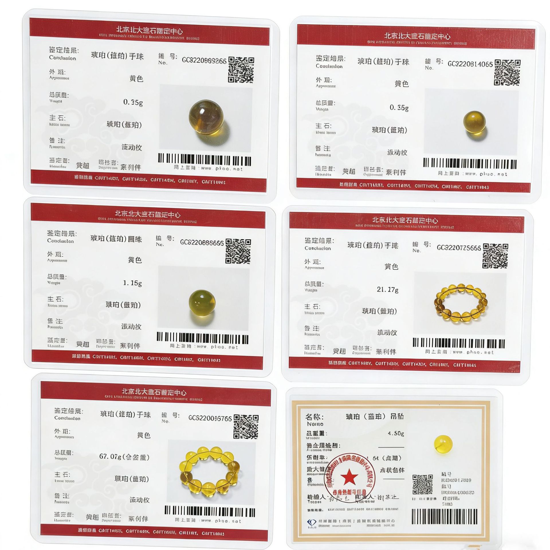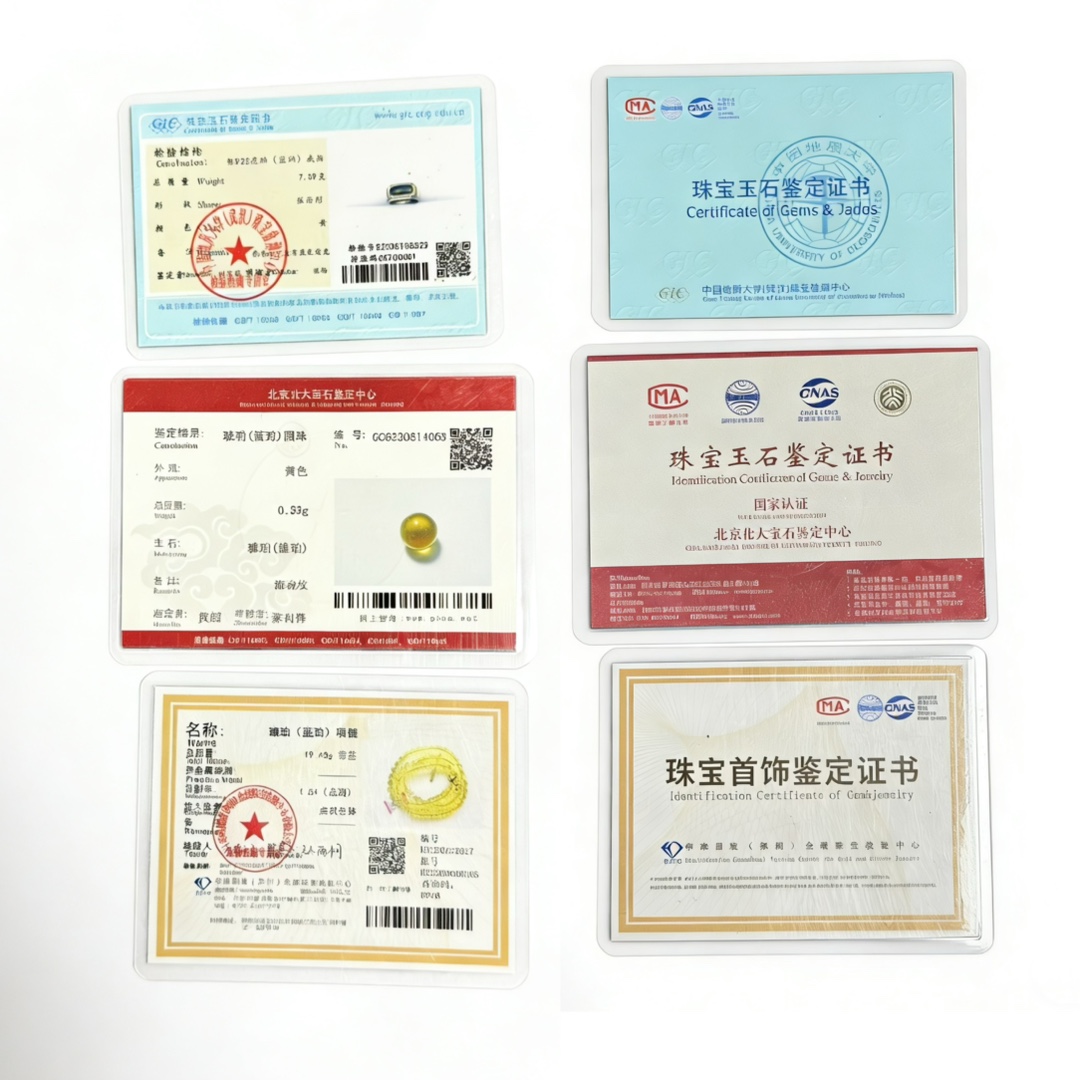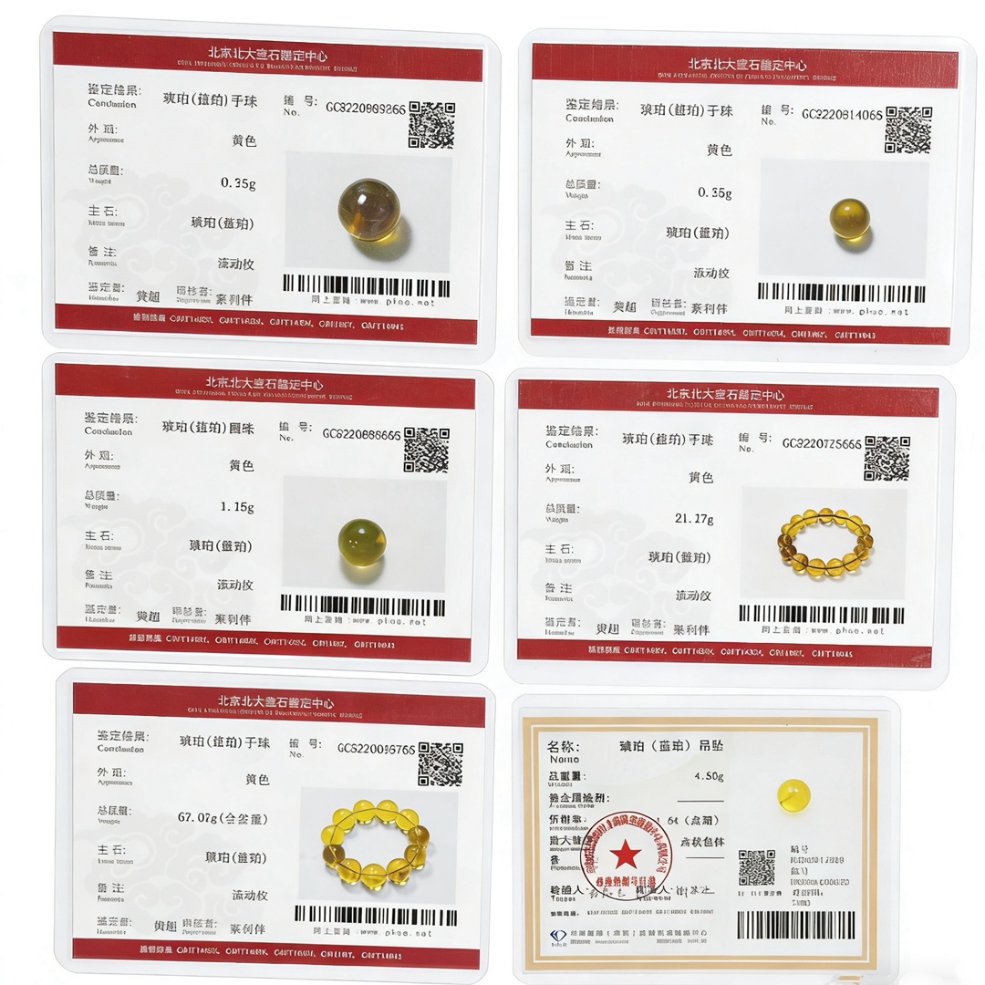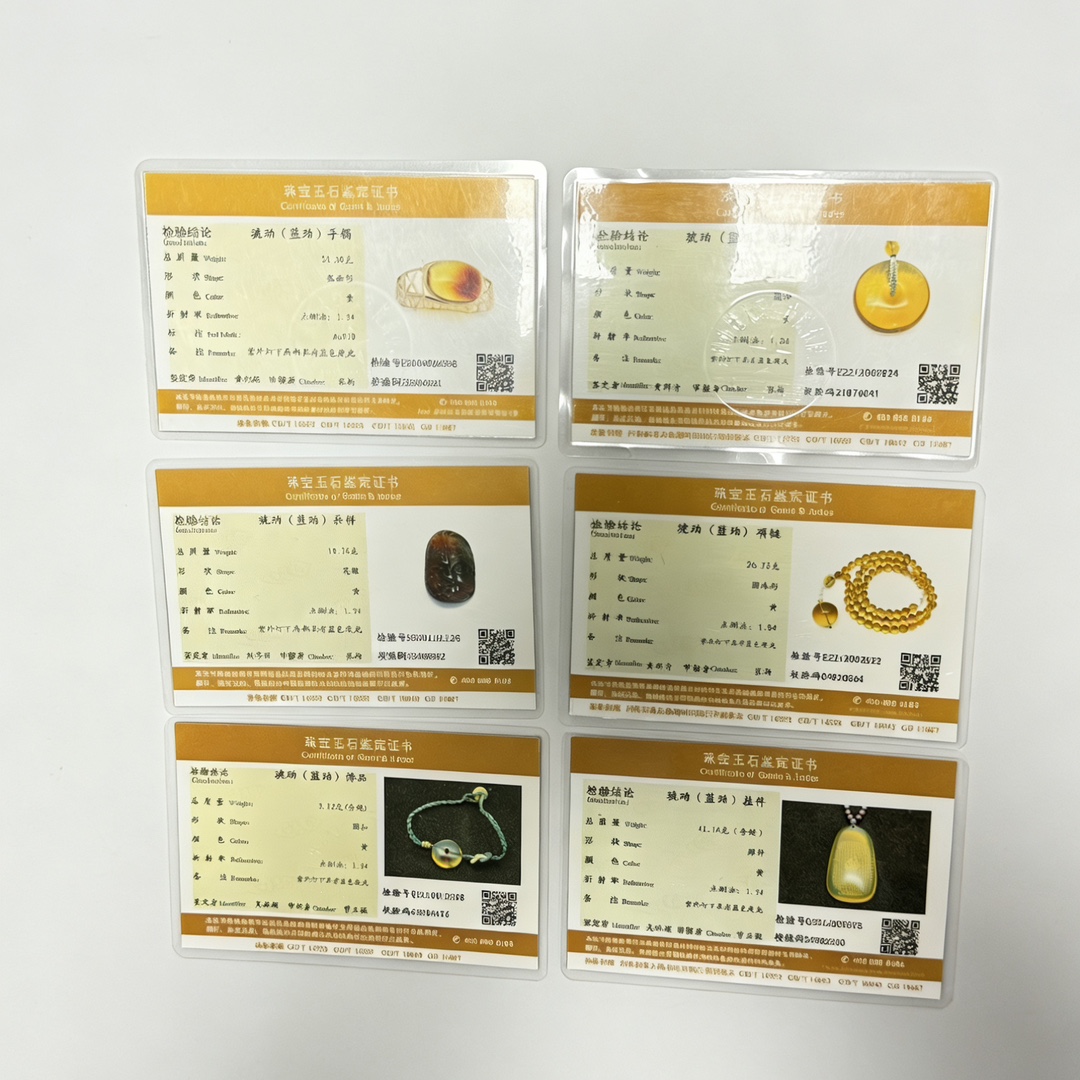 Кольцо, кулон и серьги (сертифицировано GIA); Ручные буддийские молитвенные четки с резными подвесками (Сертификат Пекинского университета); Сертификат происхождения (выдается только красный и синий янтарь из Доминиканской Республики и Мексики, остальные не подлежат выдаче).
