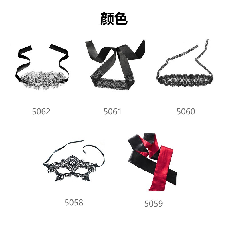 Черные кружевные повязки для глаз (5062); Белые кружевные маски для глаз (5062); Широкополый кружево черный (5061); Широкое кружево белое (5061); Черная вышивка для глаз (5060); Белая вышитая маска для глаз (5060); Черное вино красное (5059); Черный черный (5059); Черный роза (5059); Красный красный (5059)