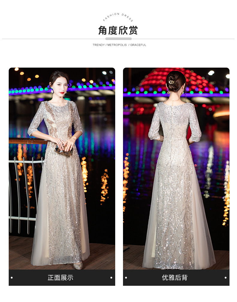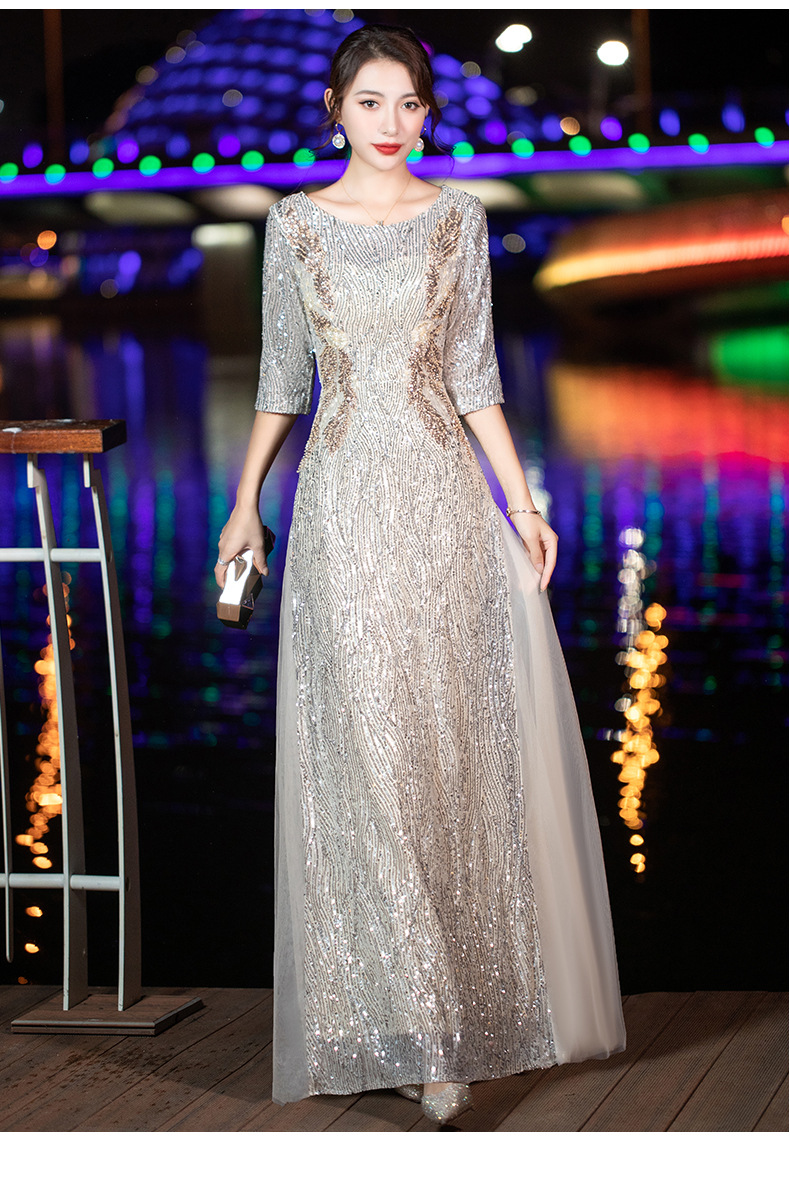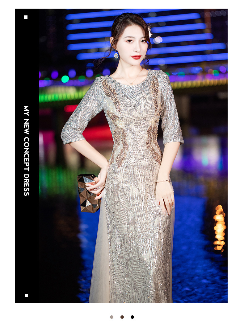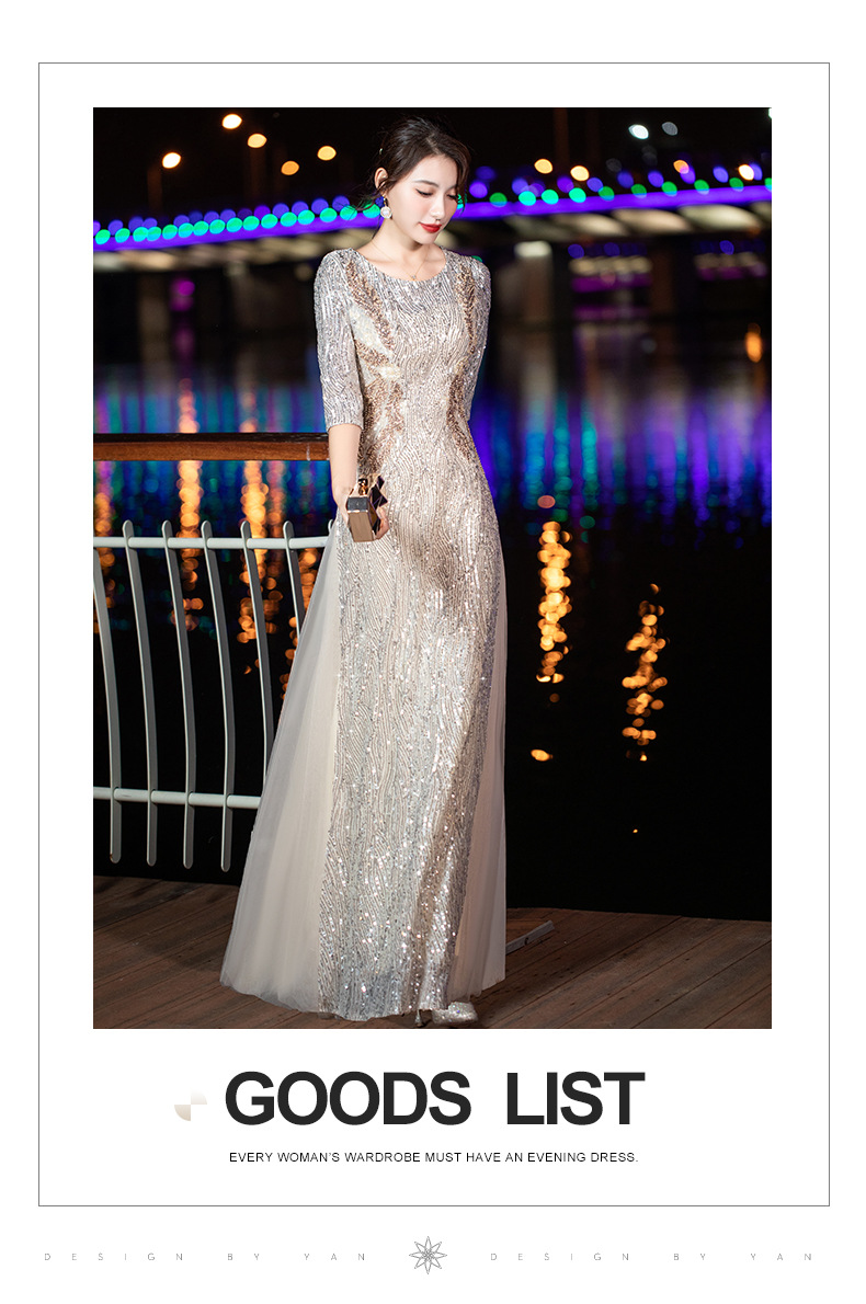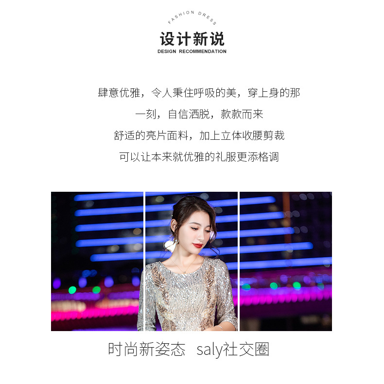 晚礼服女2022新款夏季宴会气质名媛亮片名媛主持人端庄大气连衣裙