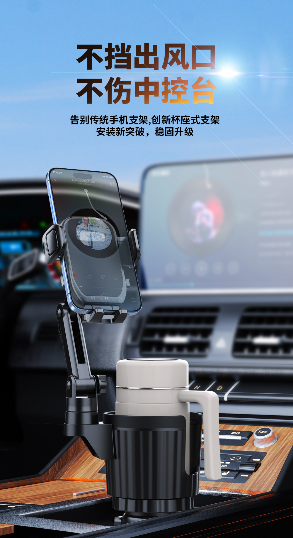 2024 Трансграничный автомобильный держатель для мобильного телефона, держатель для чашки с водой, удлинитель, автомобильная навигация, нейтральный держатель для мобильного телефона «два в одном», по индивидуальному заказу