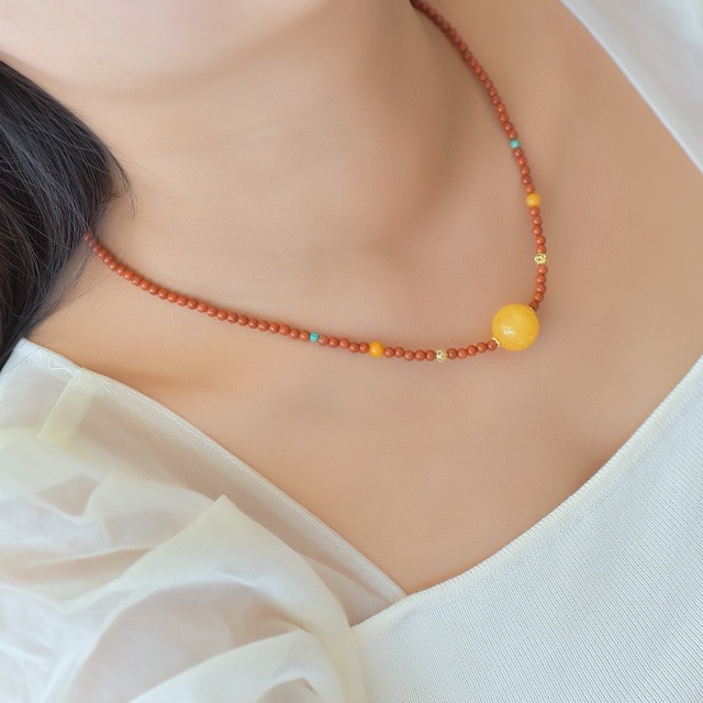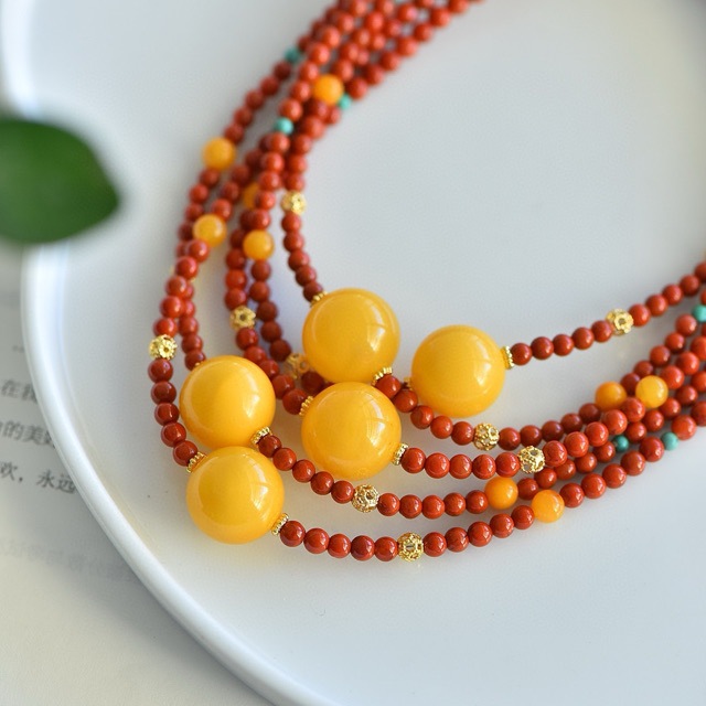 Натуральный российский материал куриное масло желтого медового воска круглый шариковый браслет ожерелье размер около 14,4 мм отправить южную красную агатовую цепь