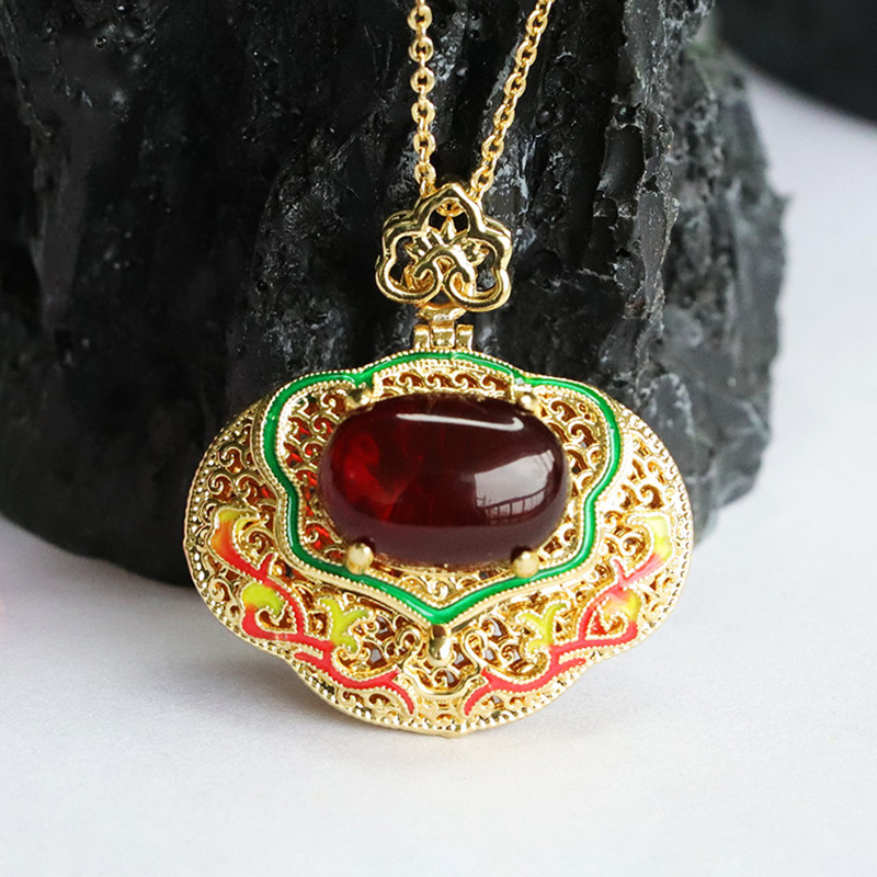 Полый кулон Ruyi из эмали из кровавого янтаря