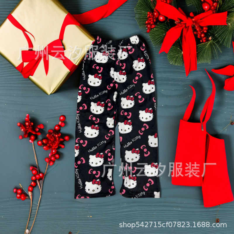 Новая внешняя торговля Рождественский мультфильм KT Cat Памка толстая женщина плюс бархат осень и зима теплый отдых домашний фланец брюки