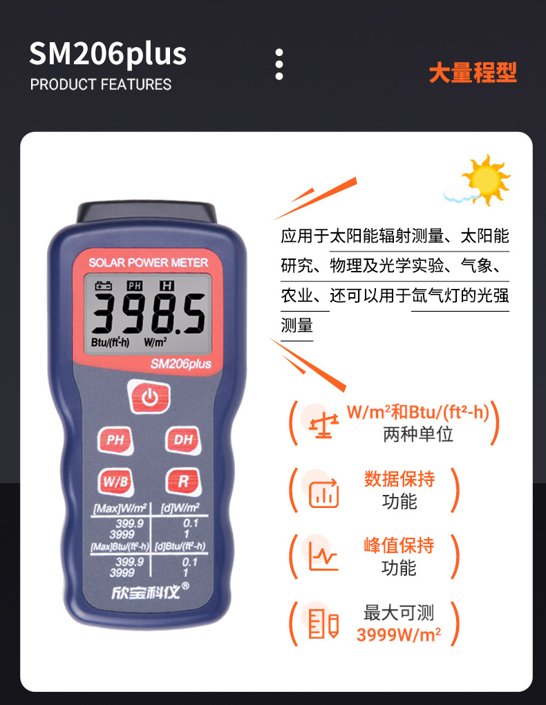 Xinbao SM206 Солнечный радиационный тестер видимой интенсивности солнечного света