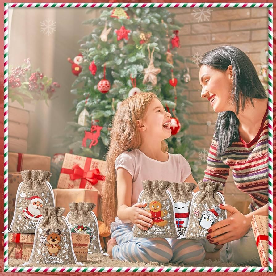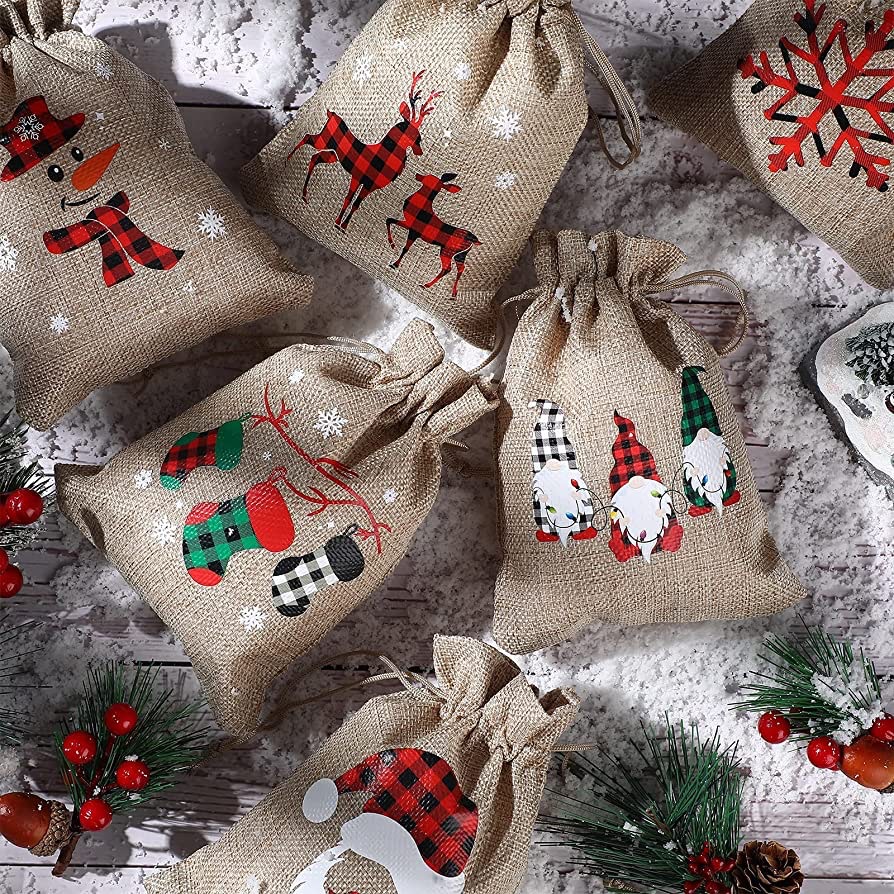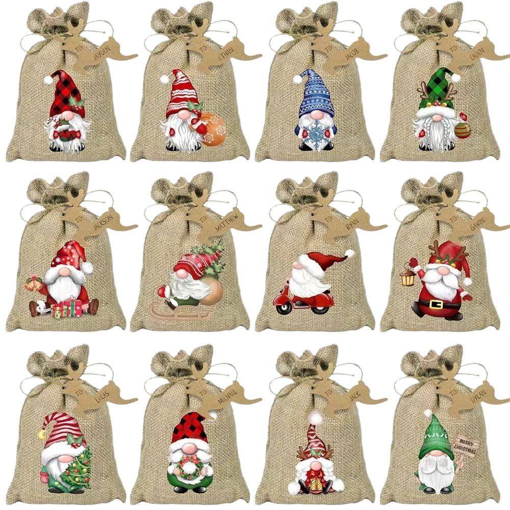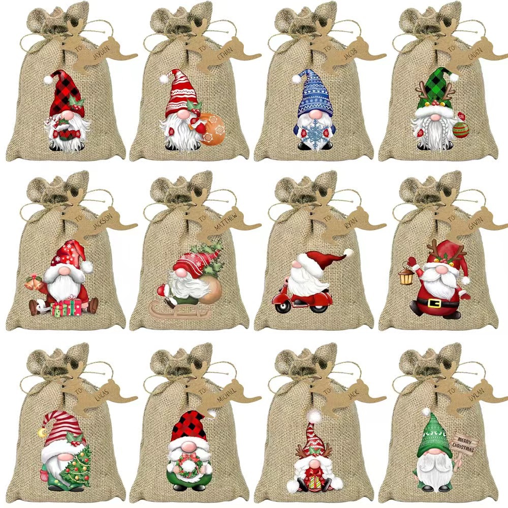 Изготовление рождественской сумки из мешковины по индивидуальному заказу