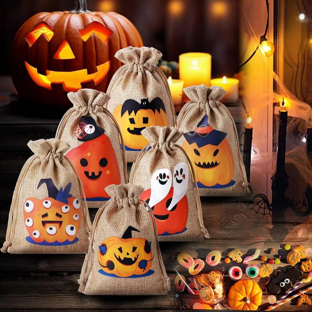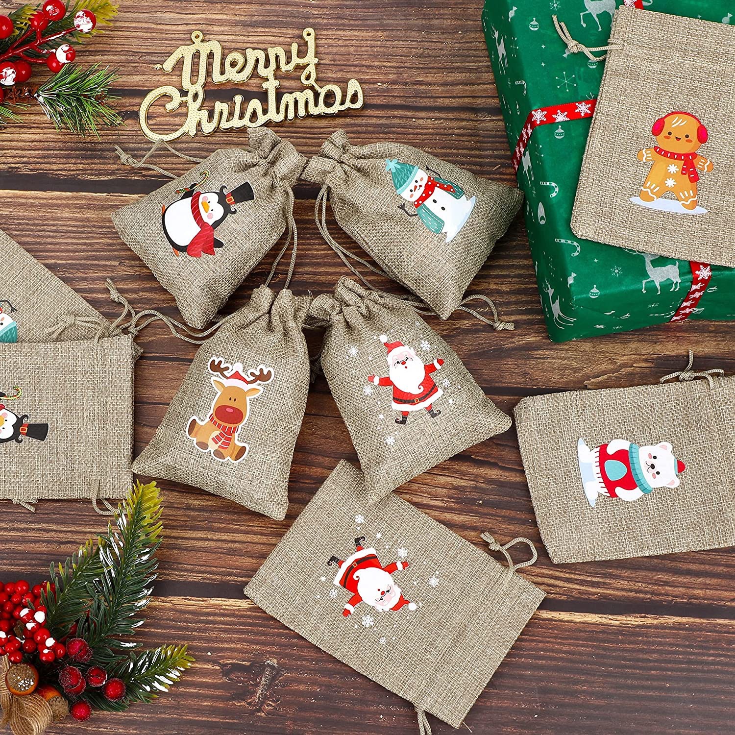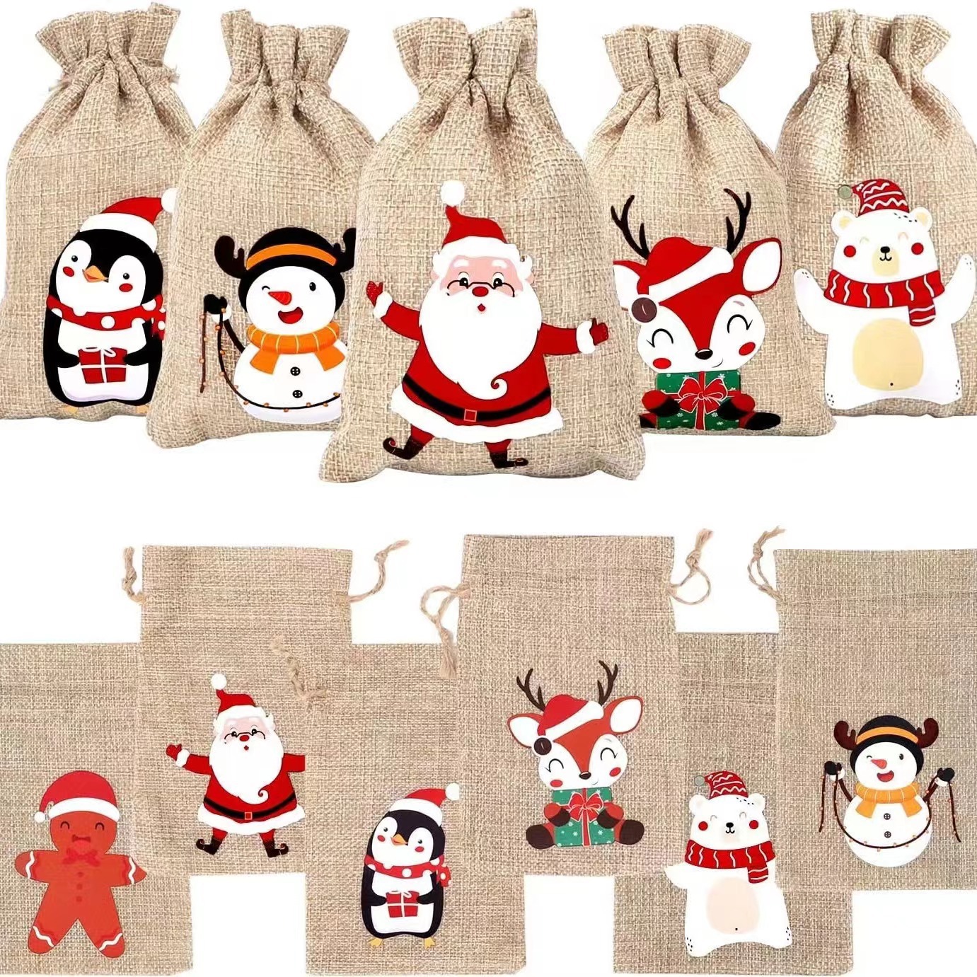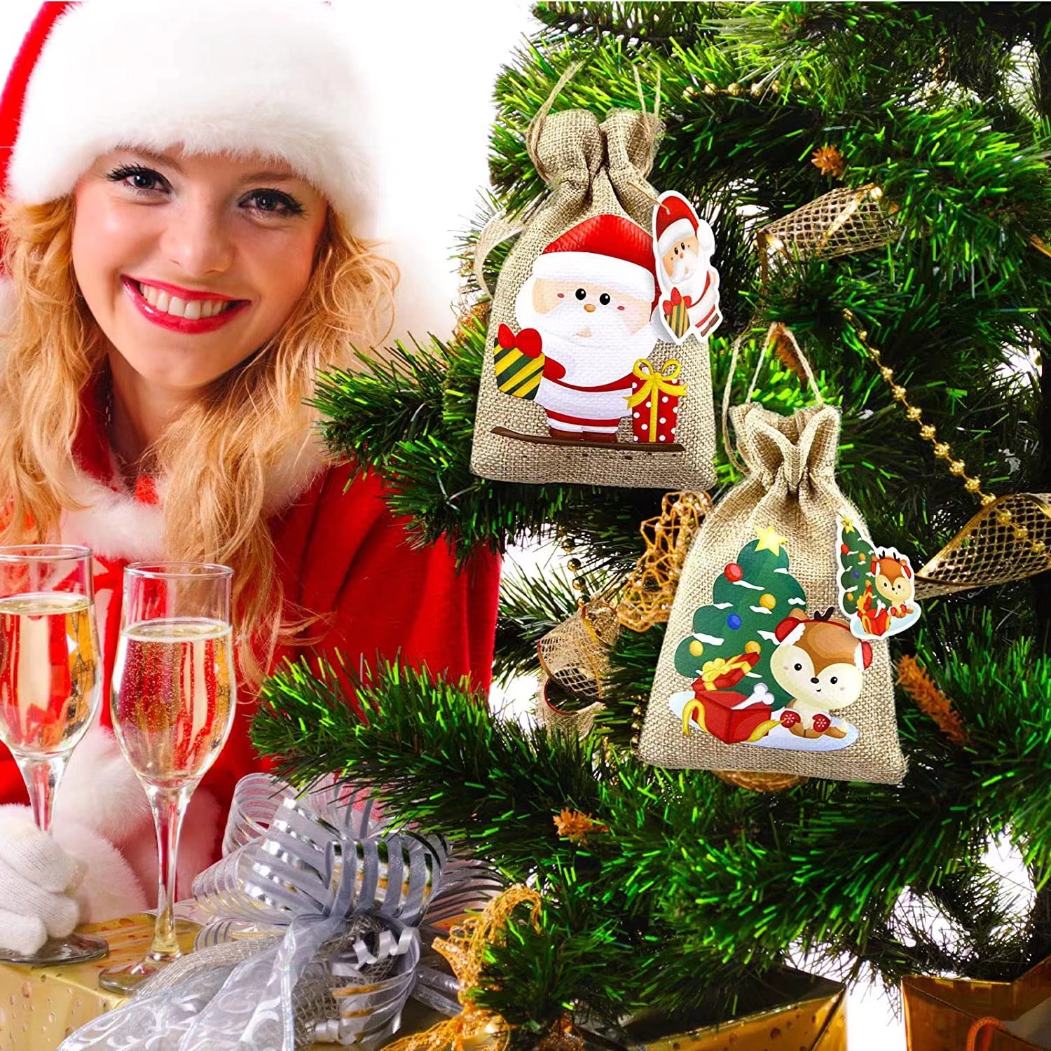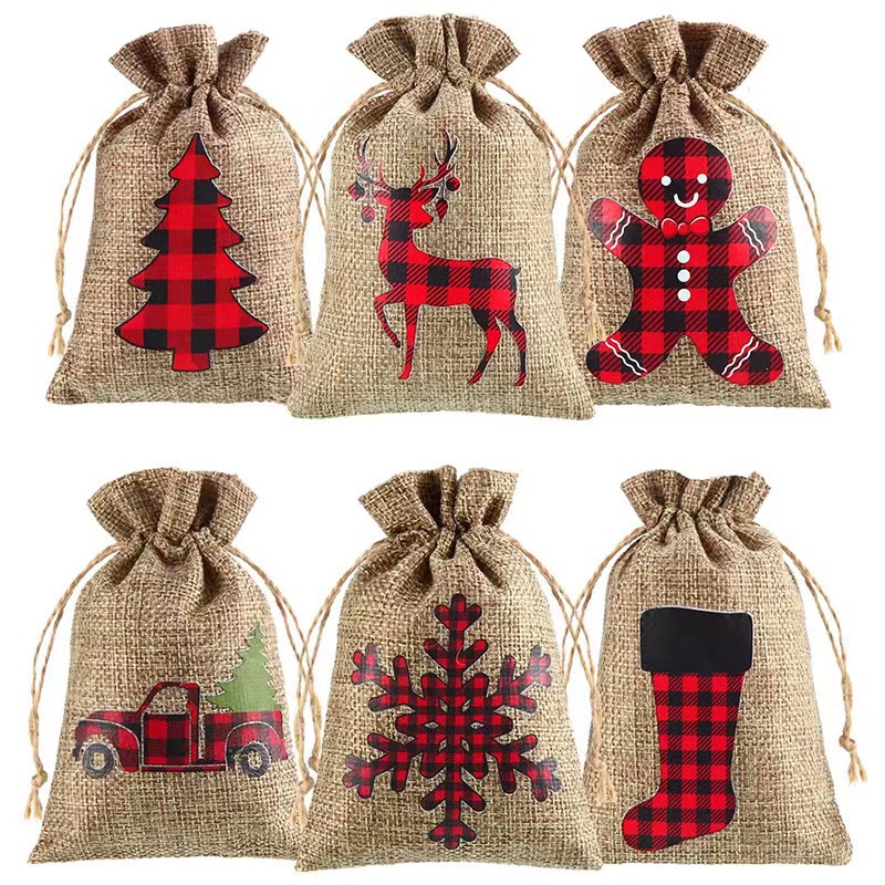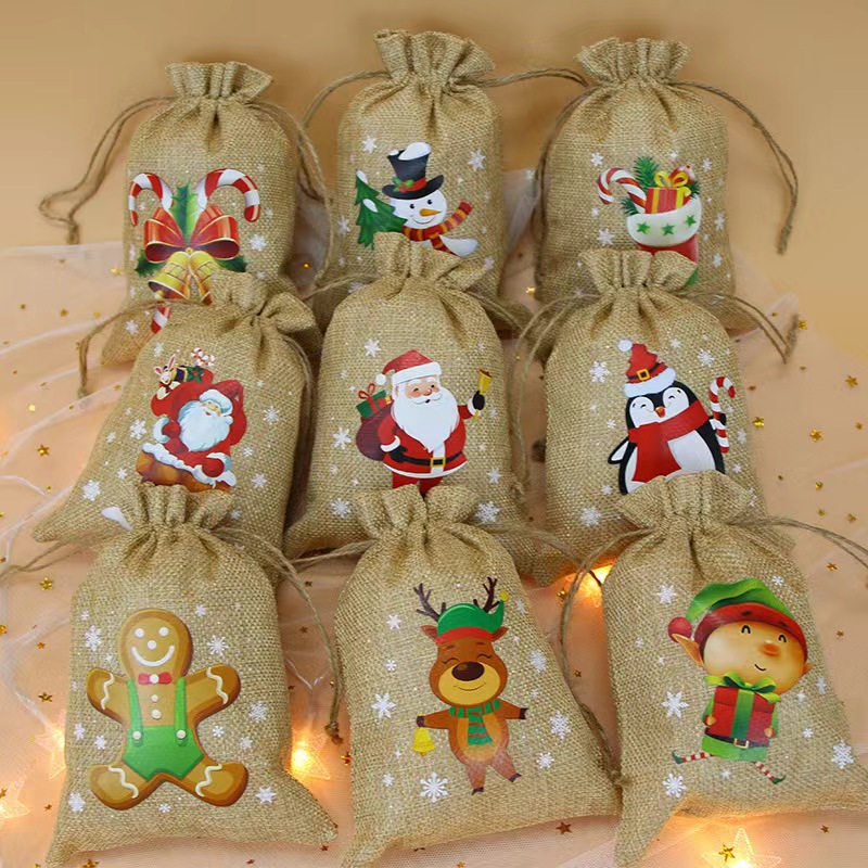 Рождественский льняной мешочек на завязках для подарков, праздничная упаковка для вина, конфет и других подарков