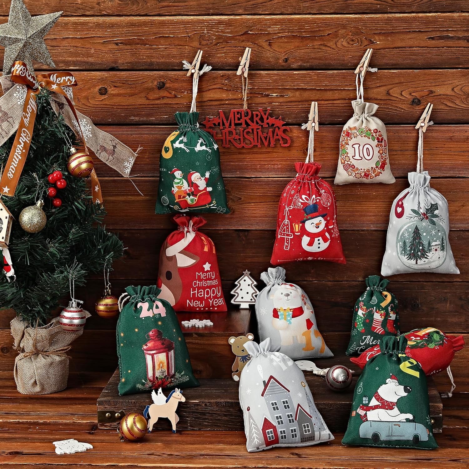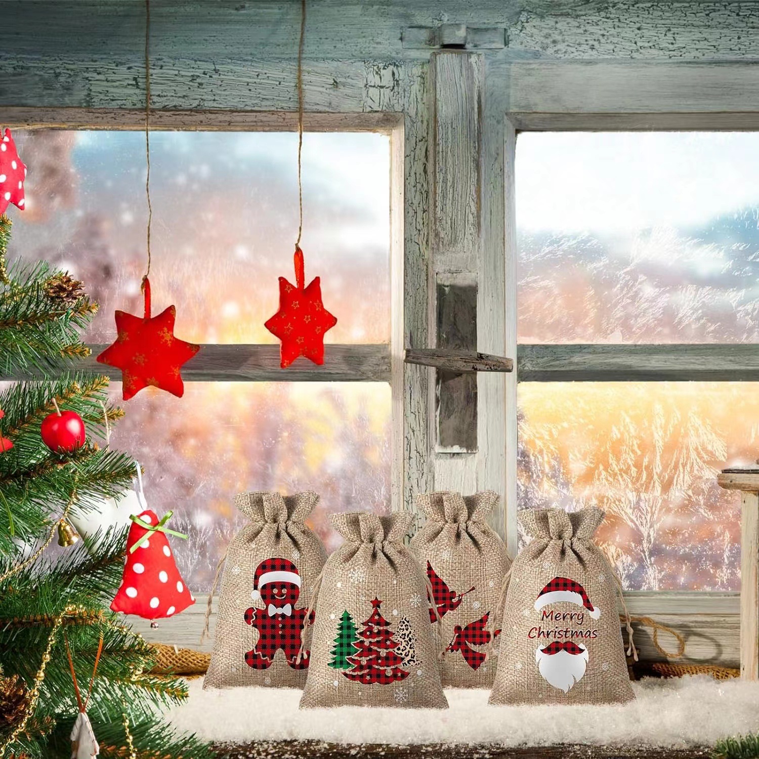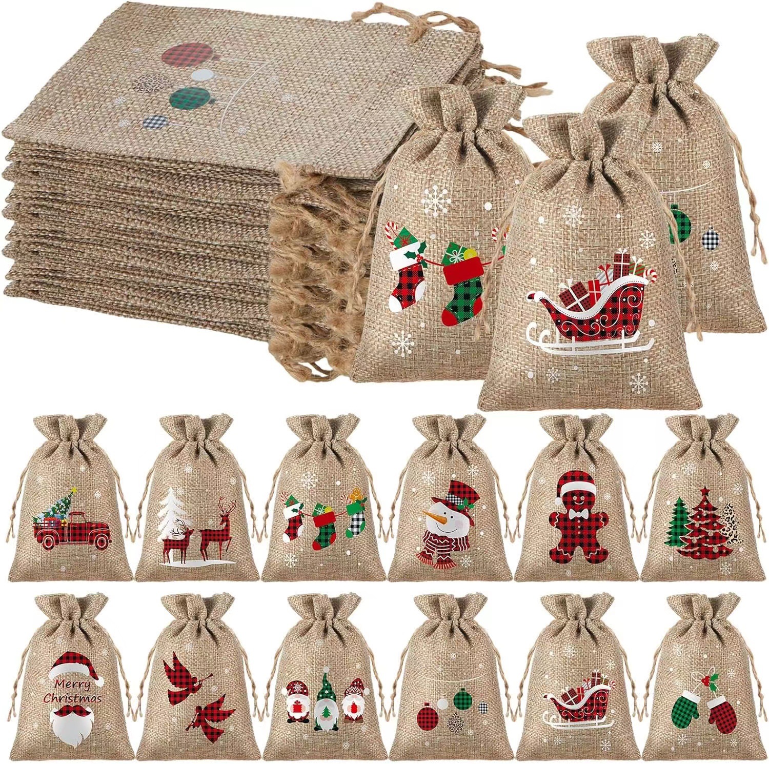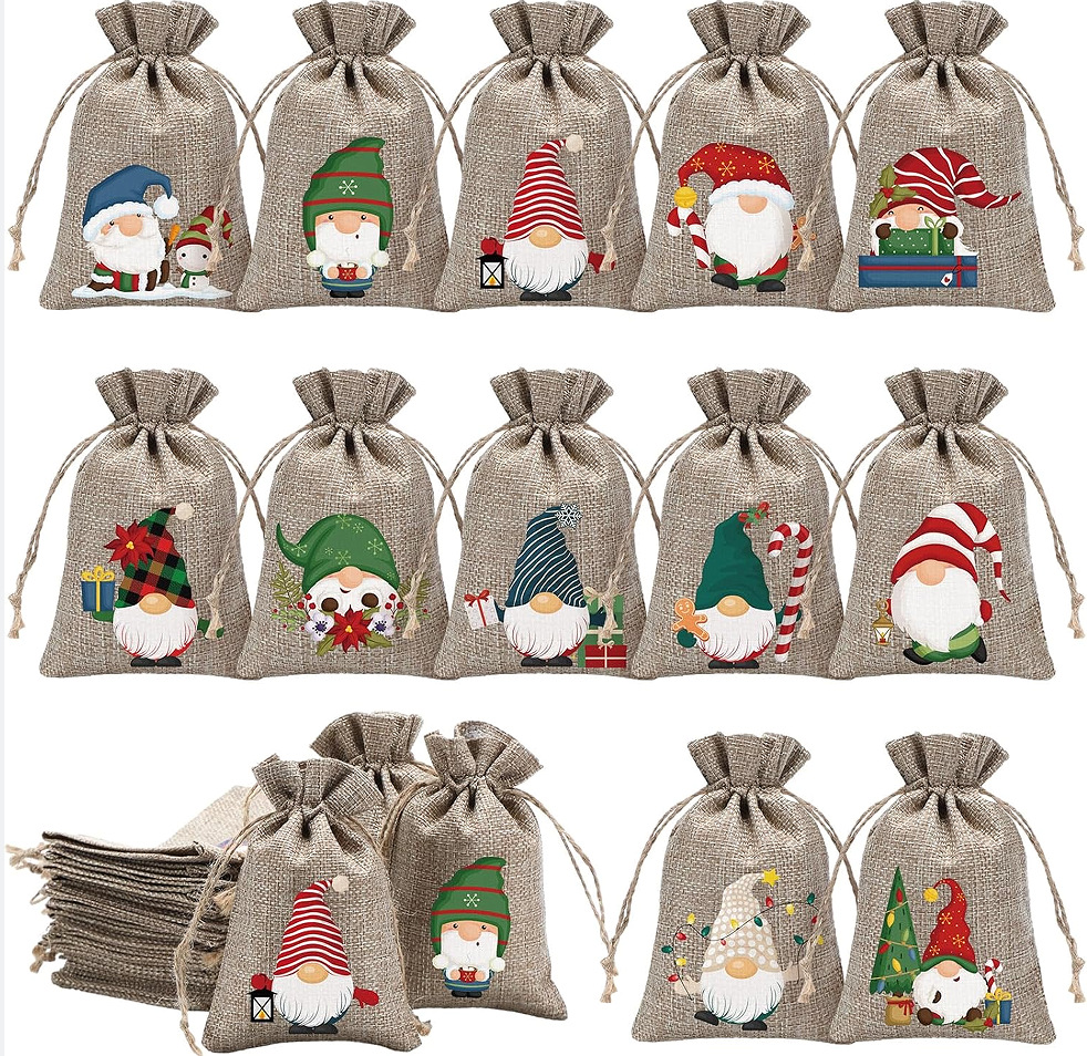 Рождественский карманный набор из мешковины на шнурке