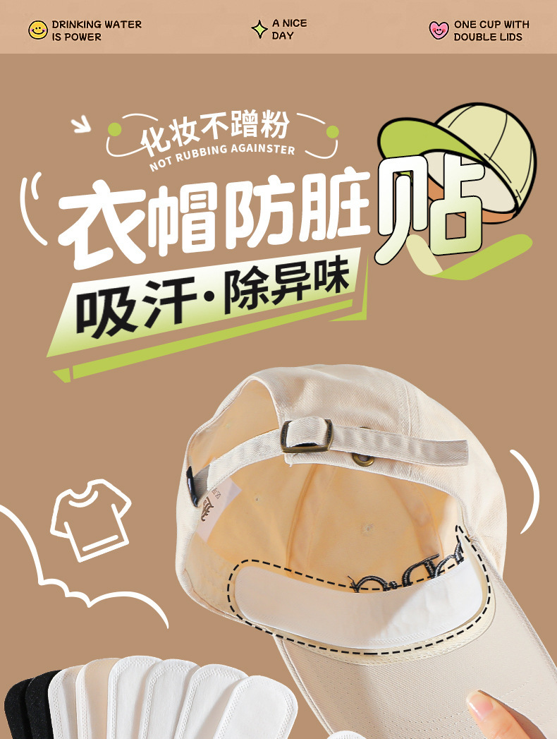 Пластырь, впитывающий пот, одноразовый воротник, пластырь, впитывающий пот, пластырь с полями, защищающий от грязи, шляпа с защитой от пота и впитывающая пот подушечка.