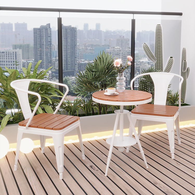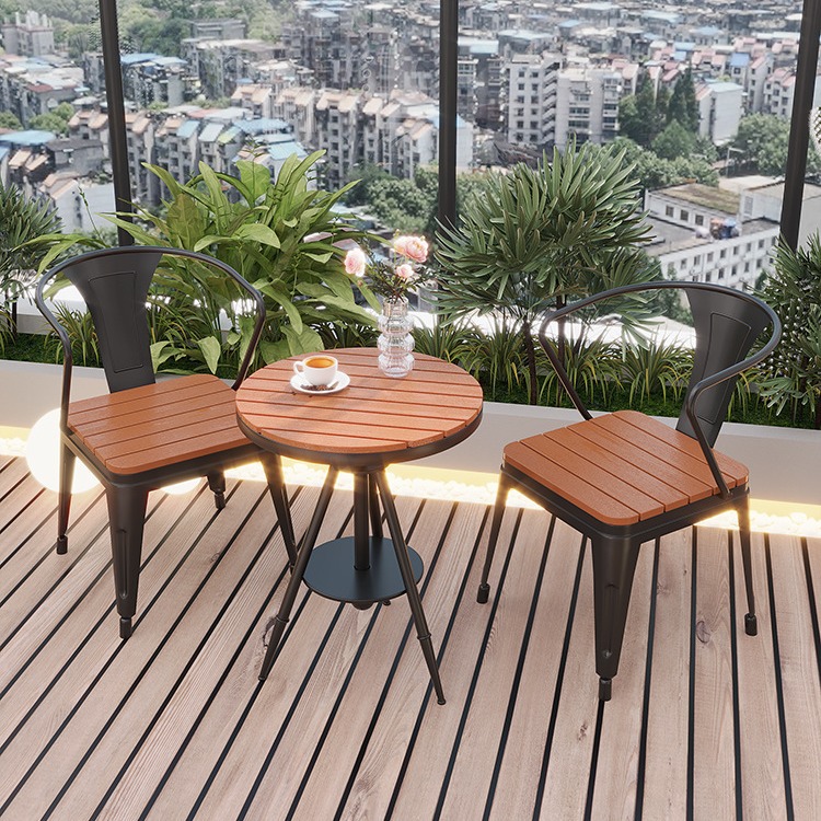 Уличные столы и стулья из пластика под дерево, обеденный стол для отдыха на открытом воздухе во дворе, стол и стулья для кафе-кофейни в саду, комплект для кафе на открытом воздухе на балконе