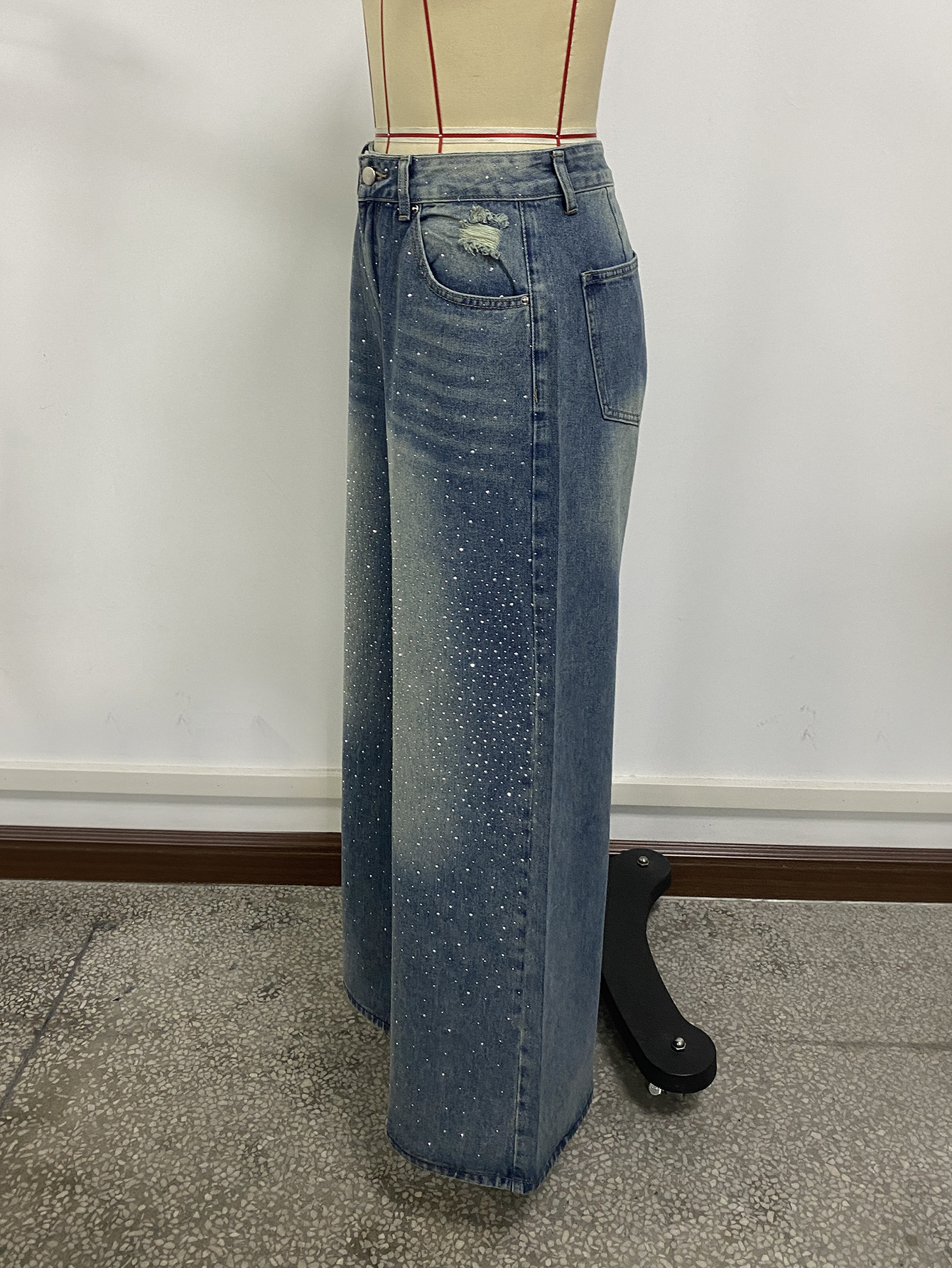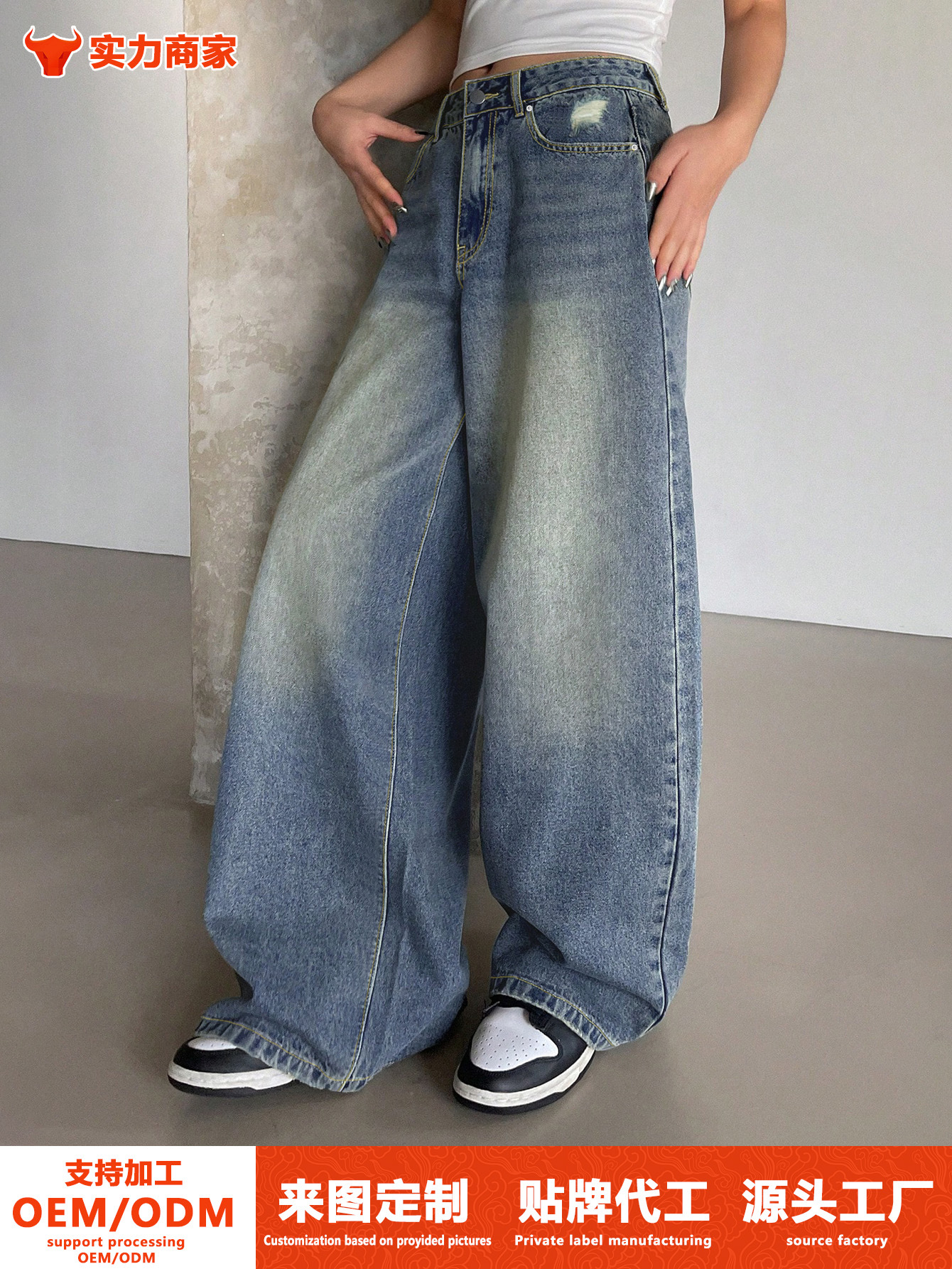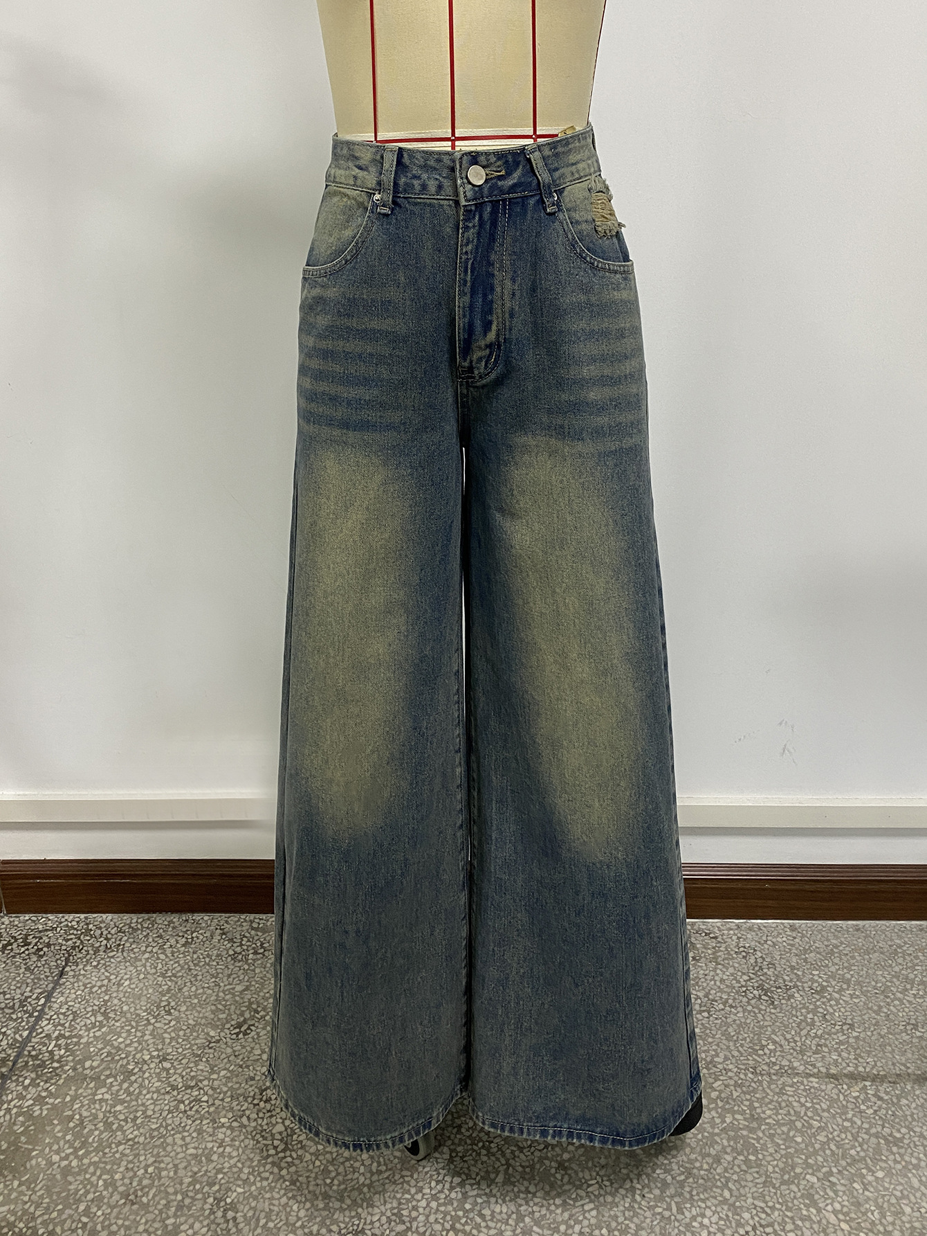 Трансграничная внешняя торговля Amazon европейская и американская вода мыть синие широкие ноги супер длинные джинсы