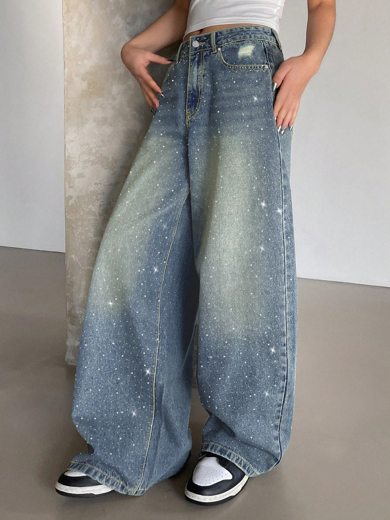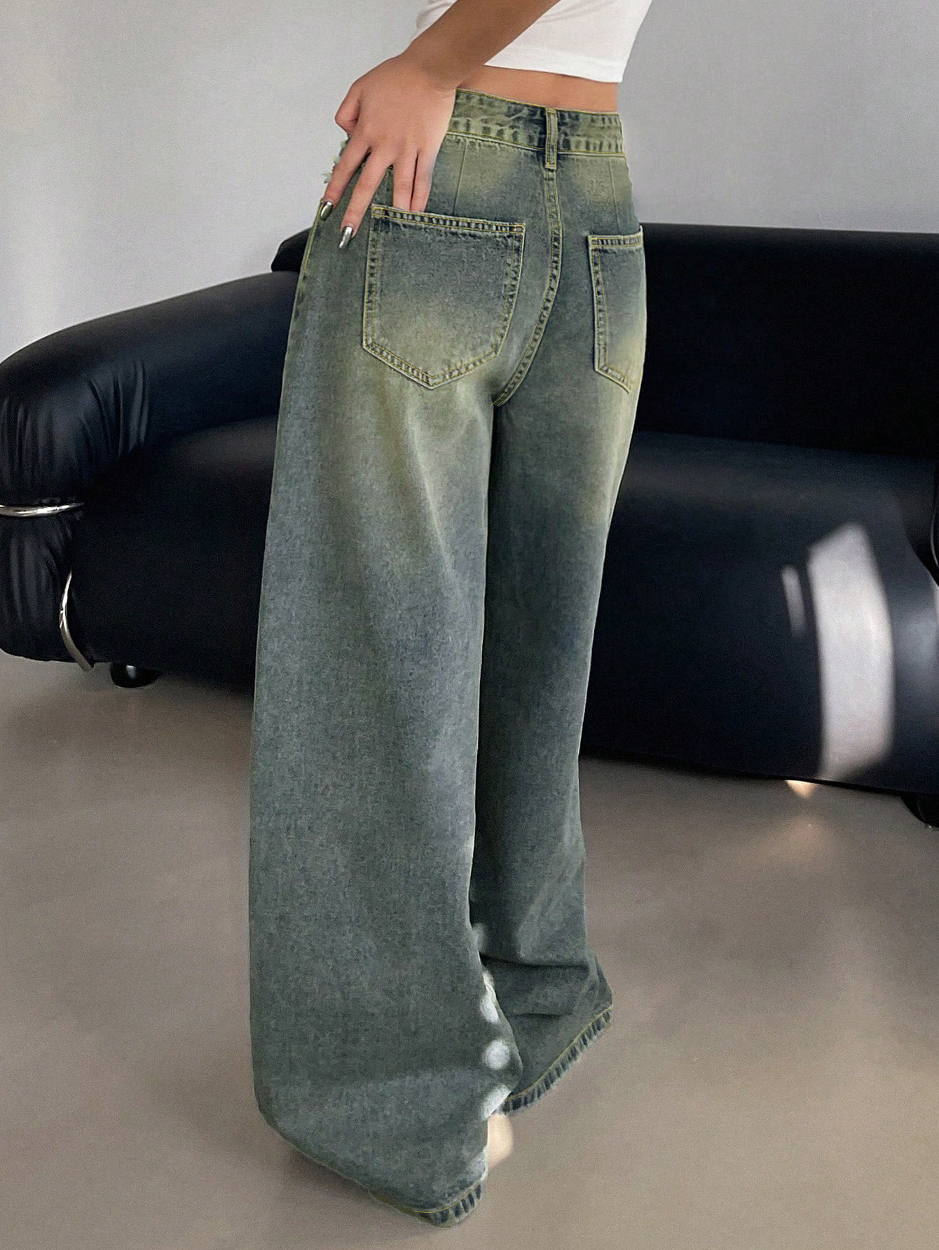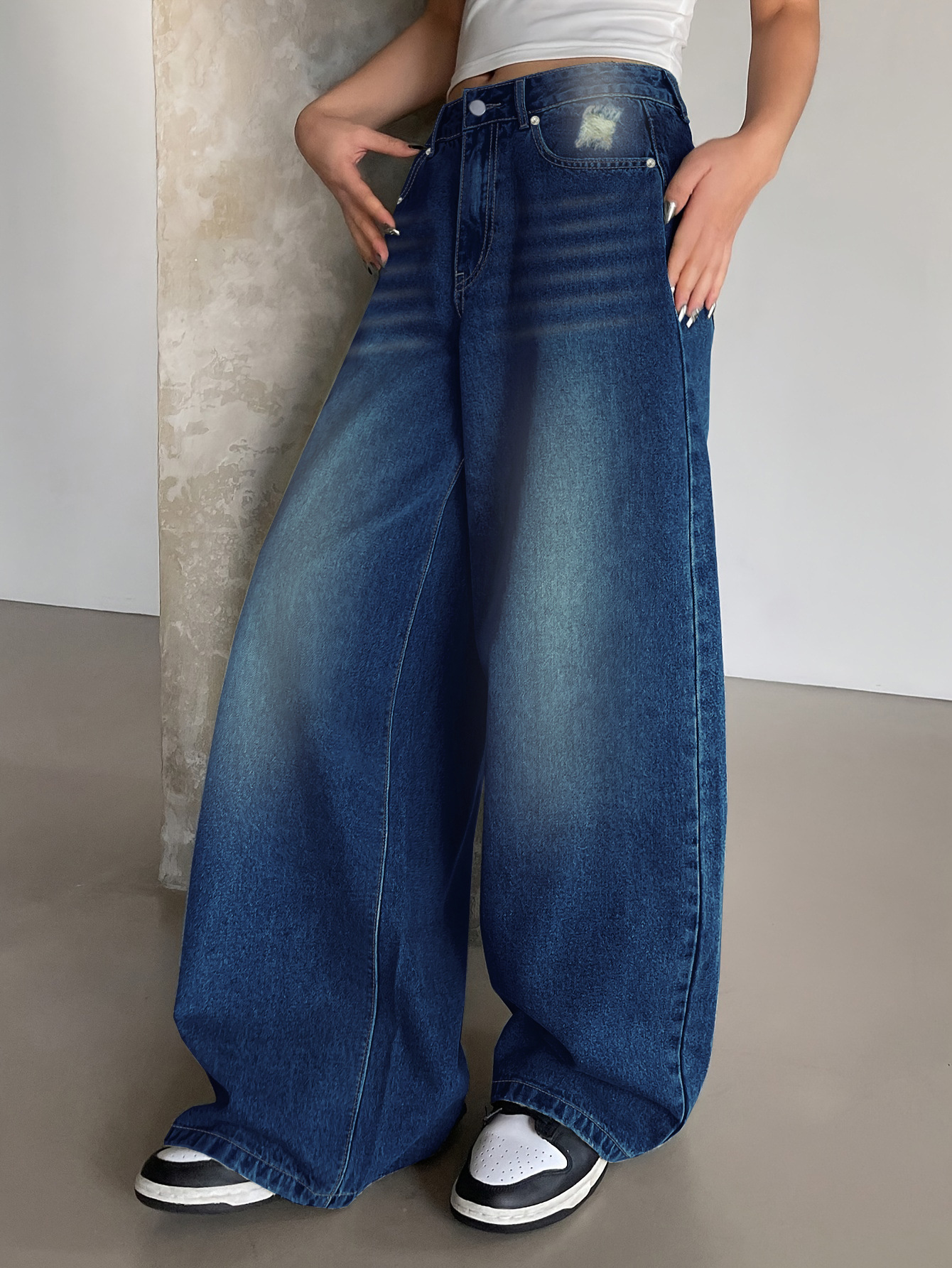 Трансграничная внешняя торговля Amazon европейская и американская вода мыть синие широкие ноги супер длинные джинсы