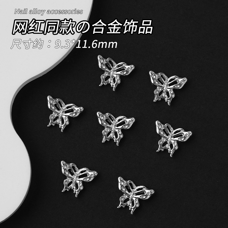 Металлические аксессуары для ногтей в новом стиле: миниатюрные бабочки из сплава, полые, для нейл-арта, хит продаж среди интернет-знаменитостей, оптом