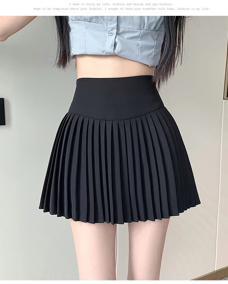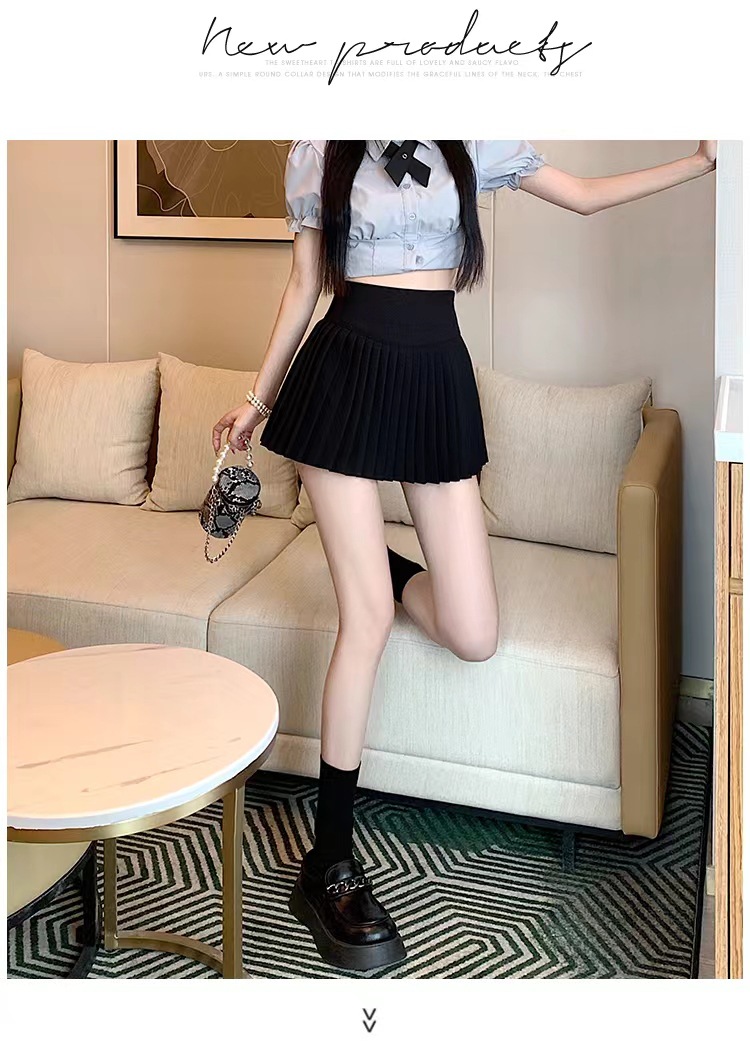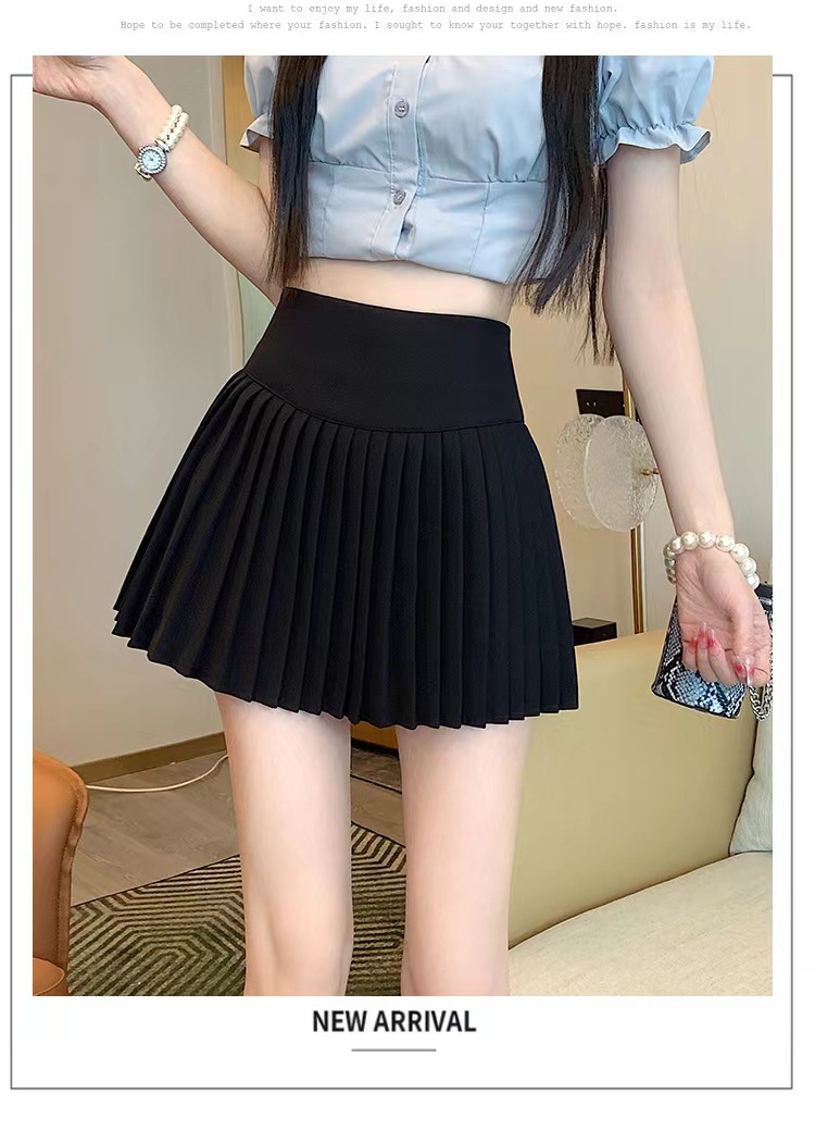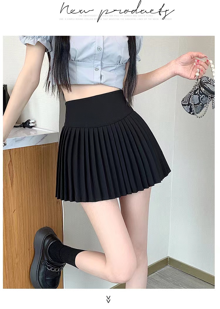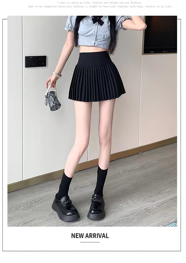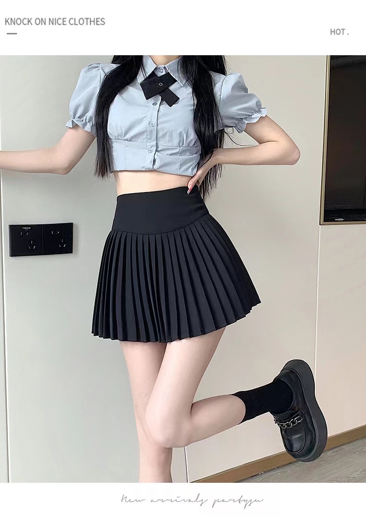 Черная юбка с половинкой женская летняя высокая талия плиссированная юбка 2024 новая весна короткая юбка юбка А-образная юбка тонкая юбка юбка-зонтик летом