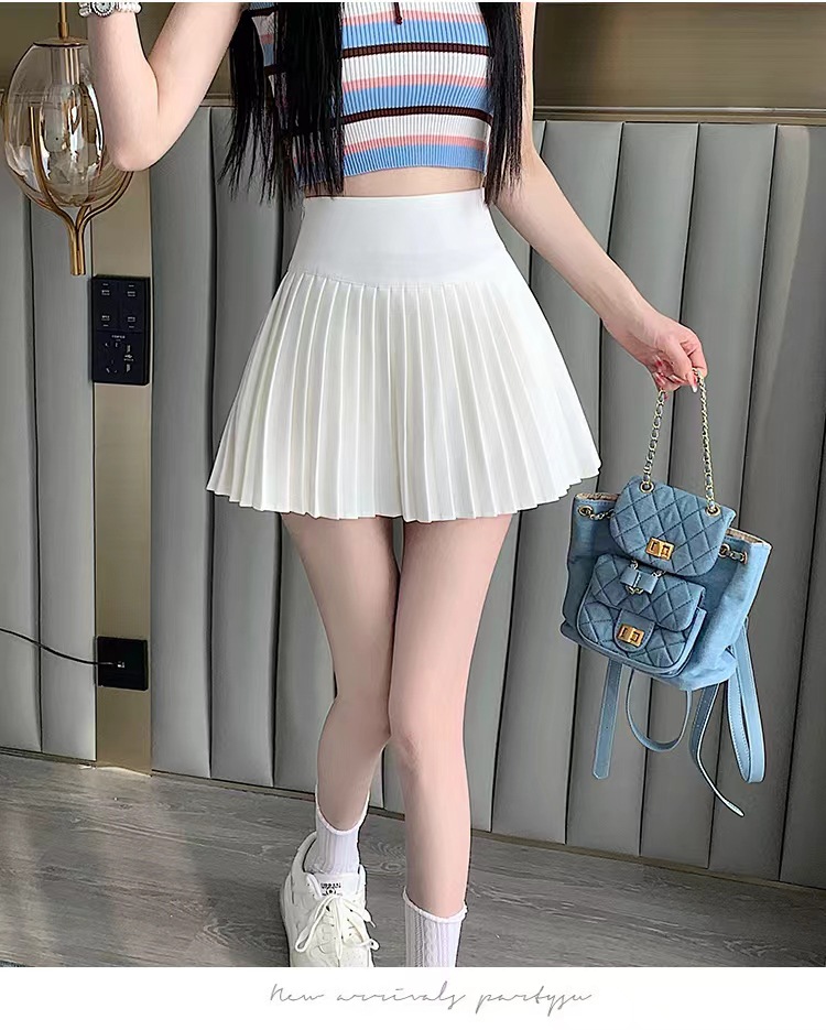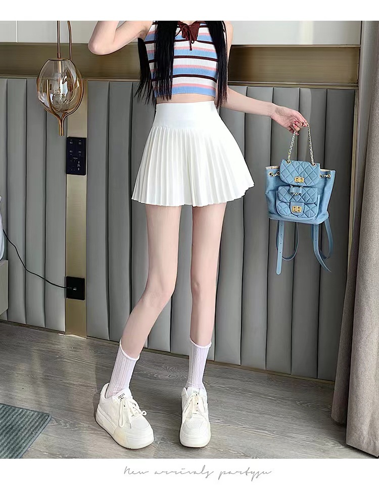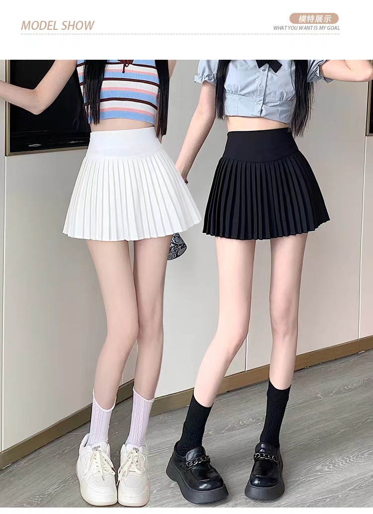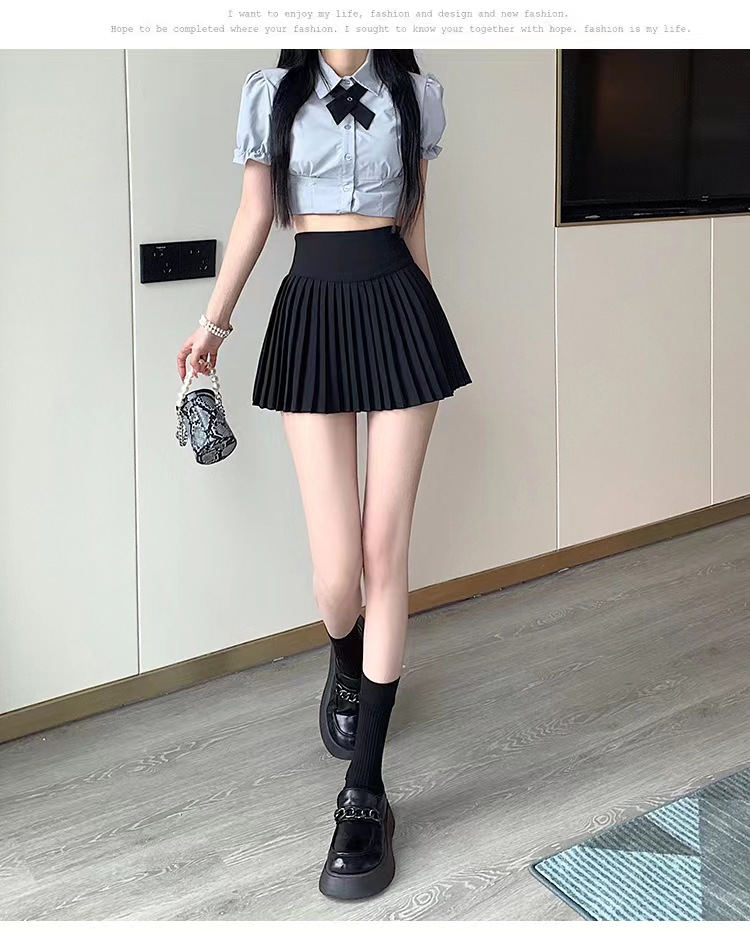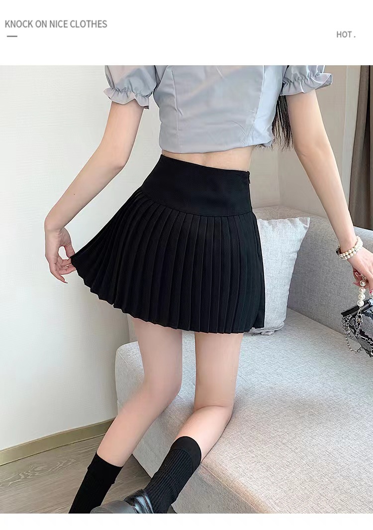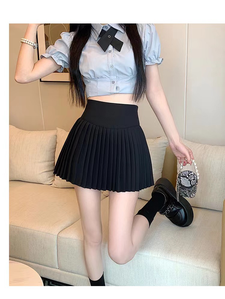 Черная юбка с половинкой женская летняя высокая талия плиссированная юбка 2024 новая весна короткая юбка юбка А-образная юбка тонкая юбка юбка-зонтик летом