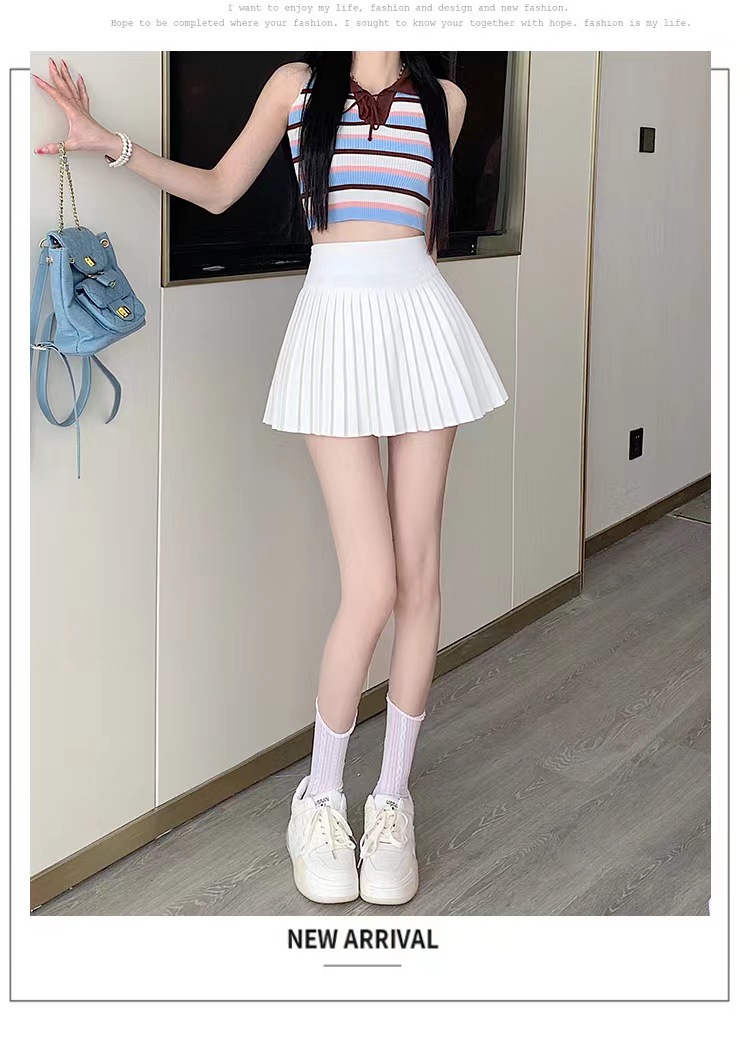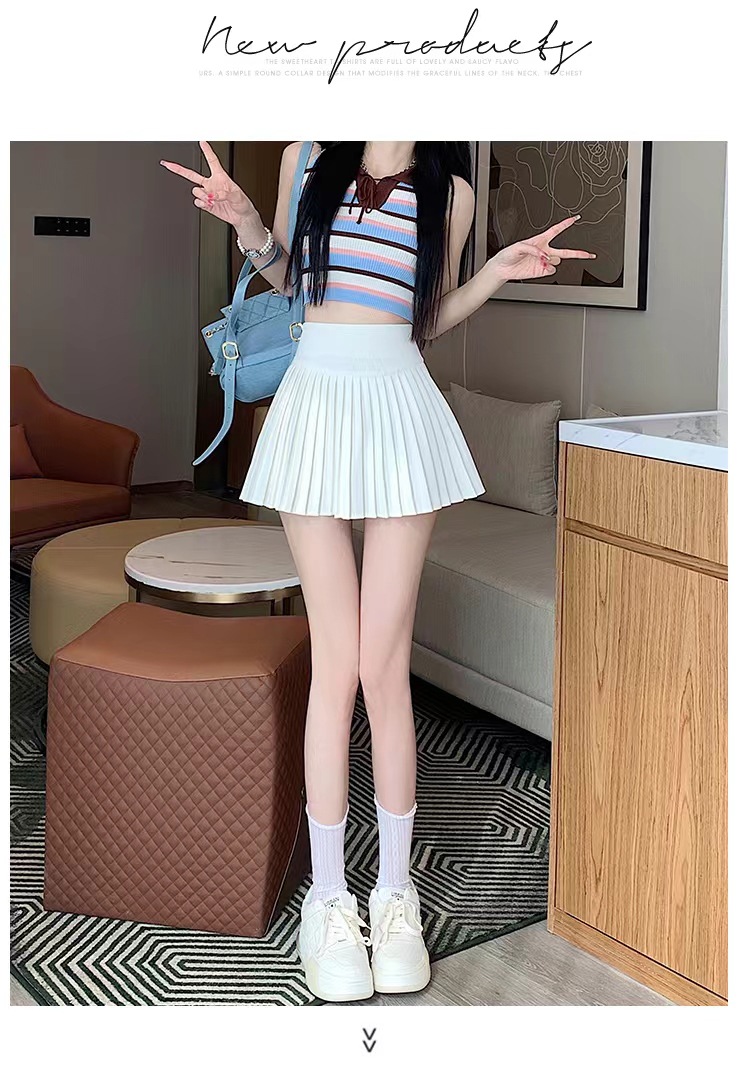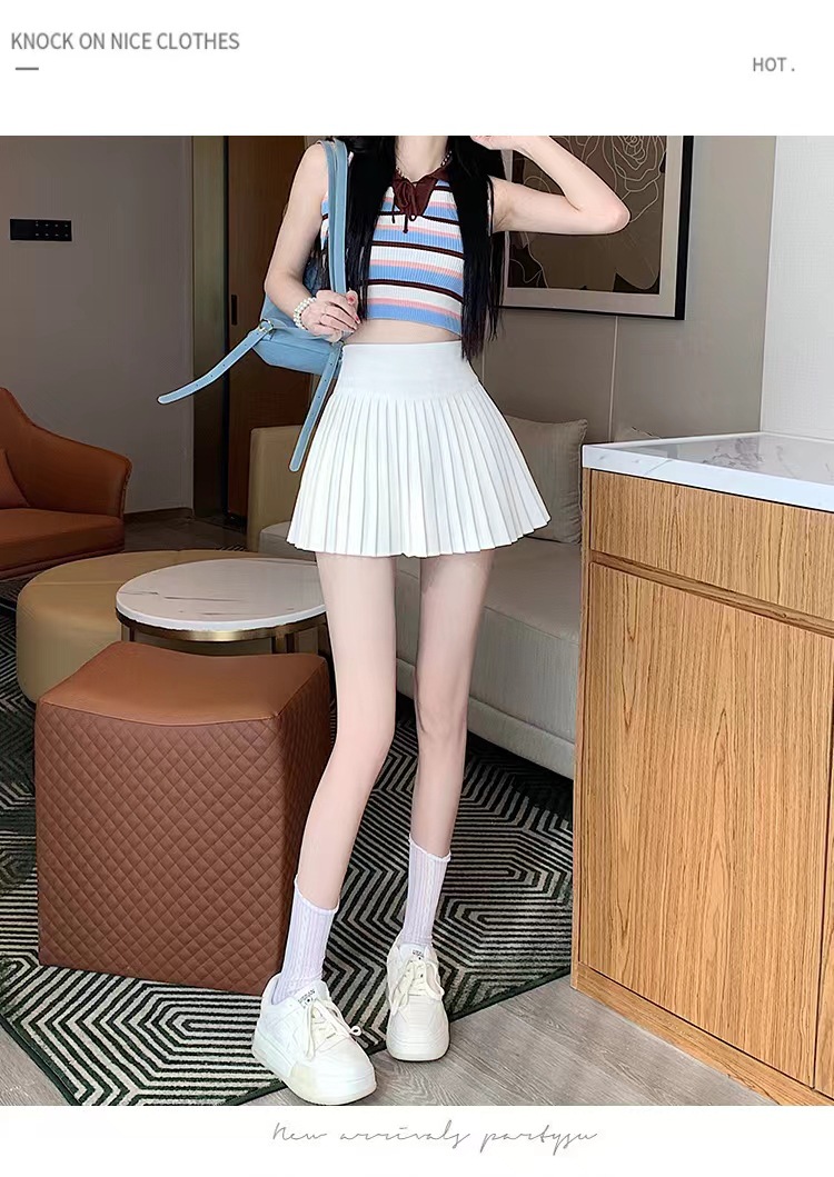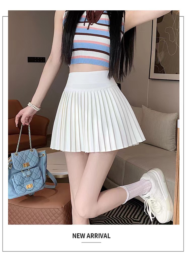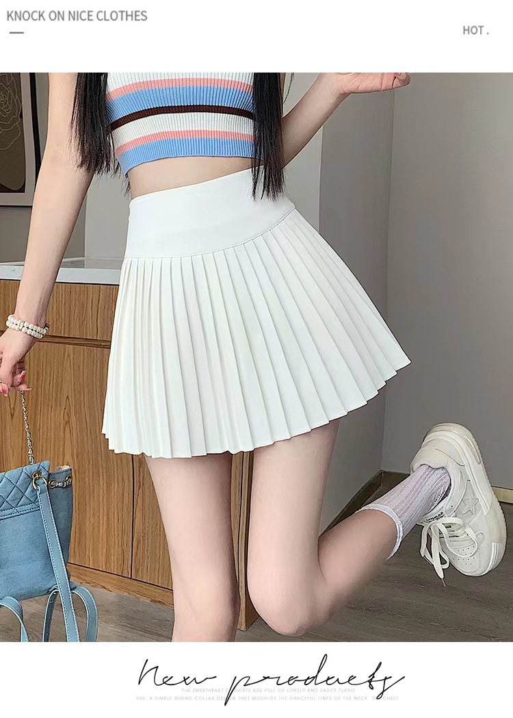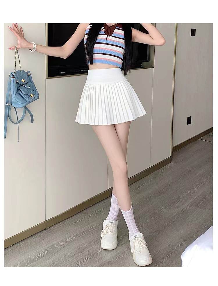 Черная юбка с половинкой женская летняя высокая талия плиссированная юбка 2024 новая весна короткая юбка юбка А-образная юбка тонкая юбка юбка-зонтик летом