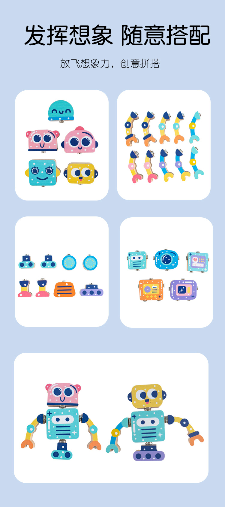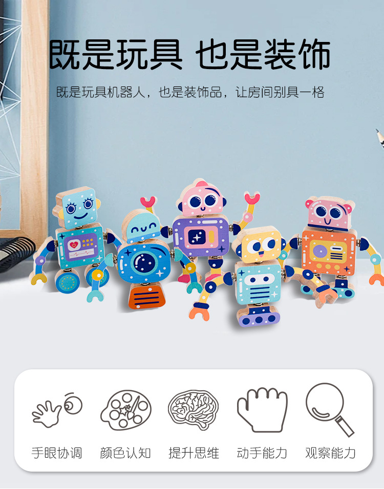 Деревянные сборочные блоки Робот постоянно меняющий стиль креативные детские комплекты