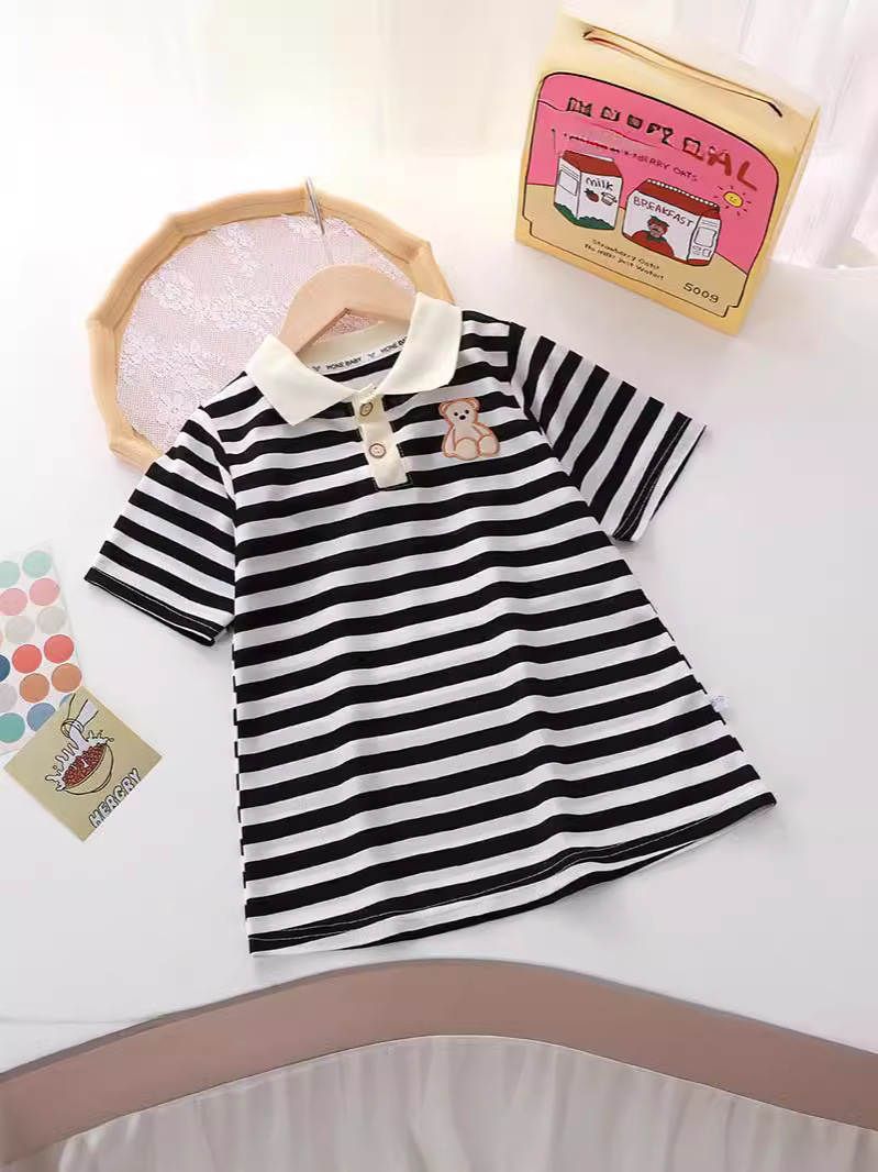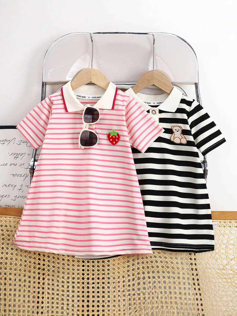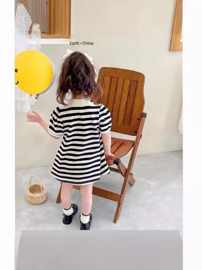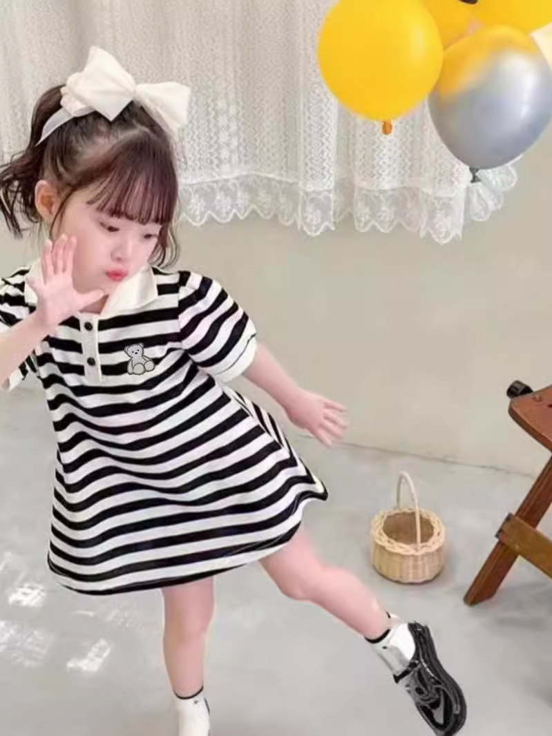Обработка пользовательских летних детей с короткими рукавами колледжа стиль полосатое платье для девочек платье принцессы с половинными рукавами