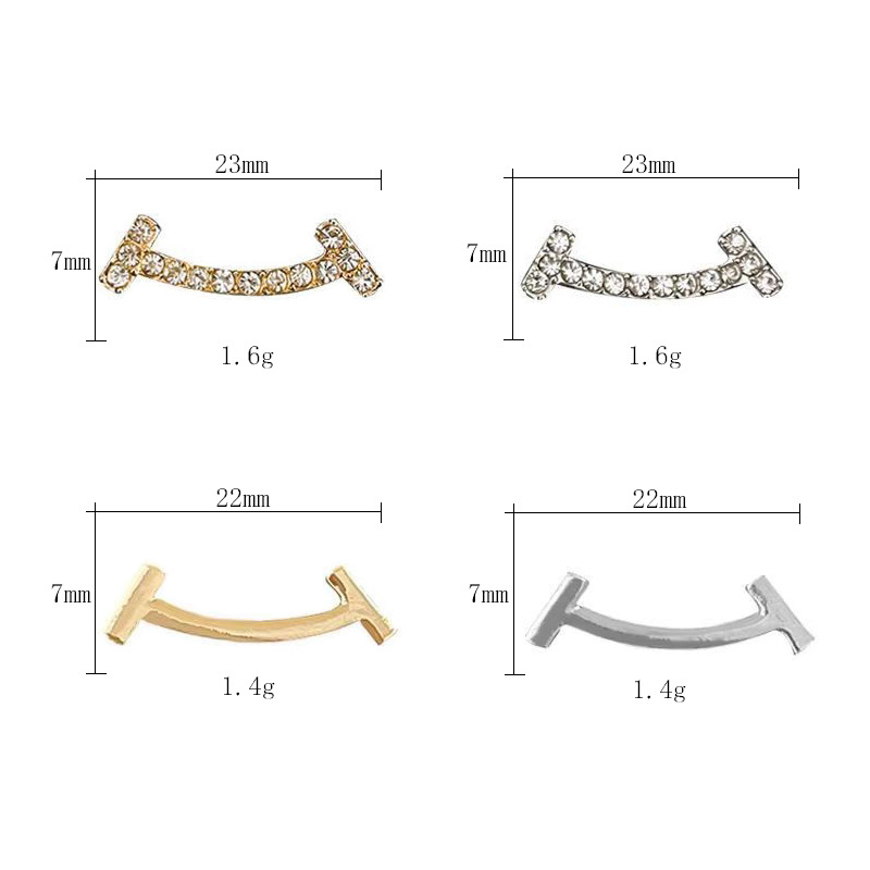 Глянцевый золотой YT-1019-1; Глысая серебряная YT-1019-2; Золотой YT-1019-3 со стразами; Серебряная YT-1019-4 со стразами; Улыбающийся стразовый золотой-01; Смайлик со стразами, серебро-02