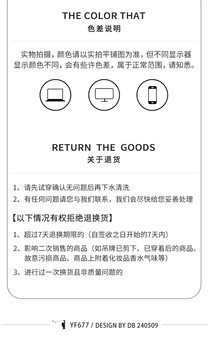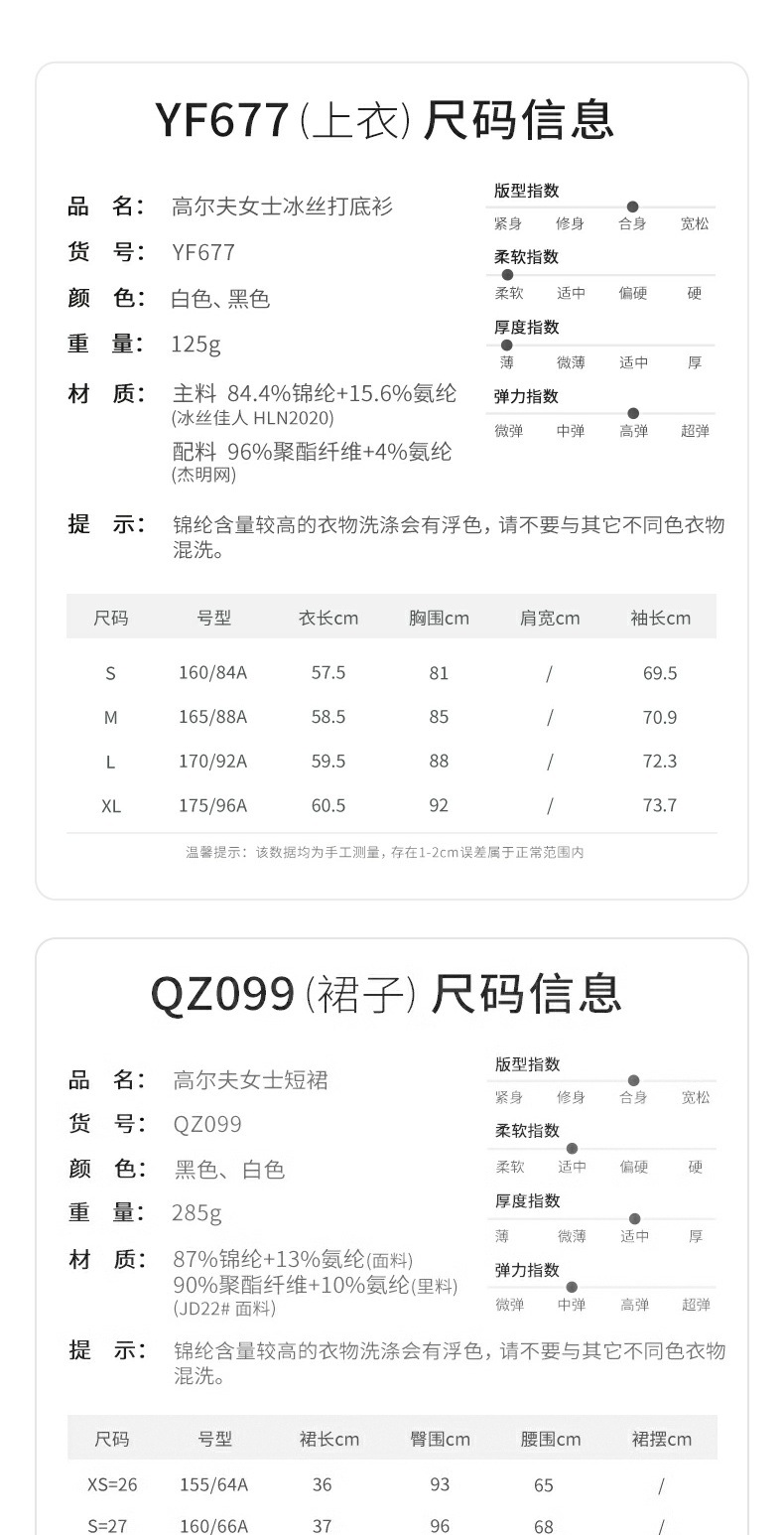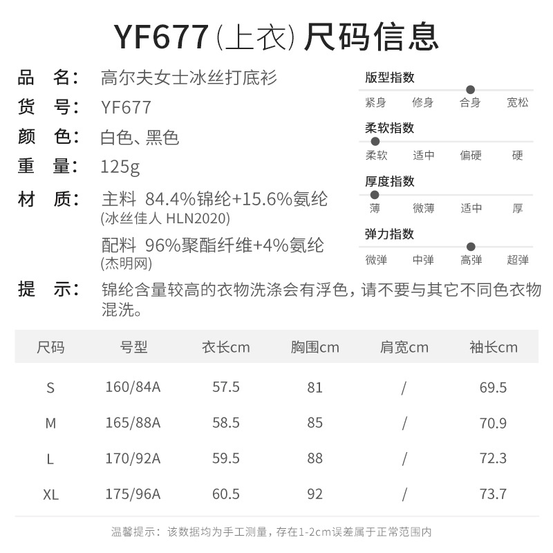 | 名 称 | 高尔夫女士冰丝打底衫 | 货 号 | YF677 | |