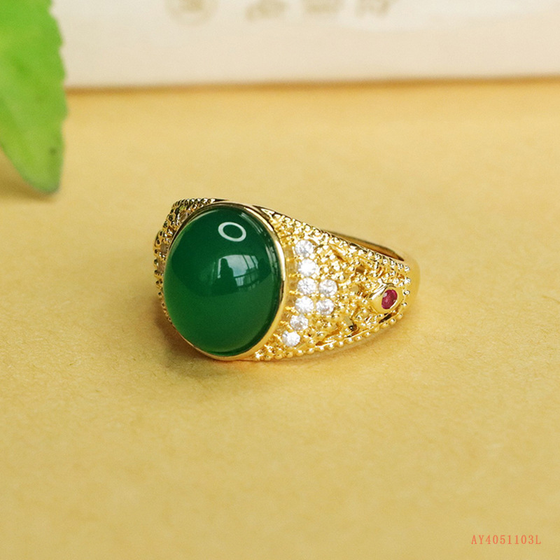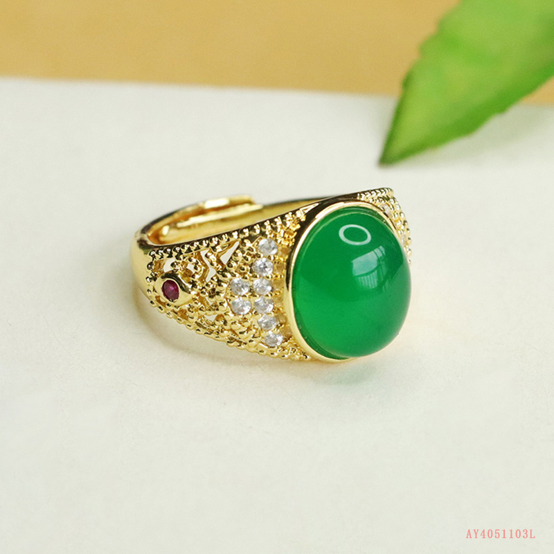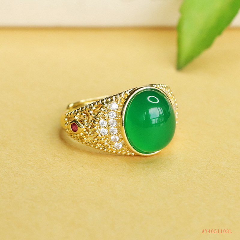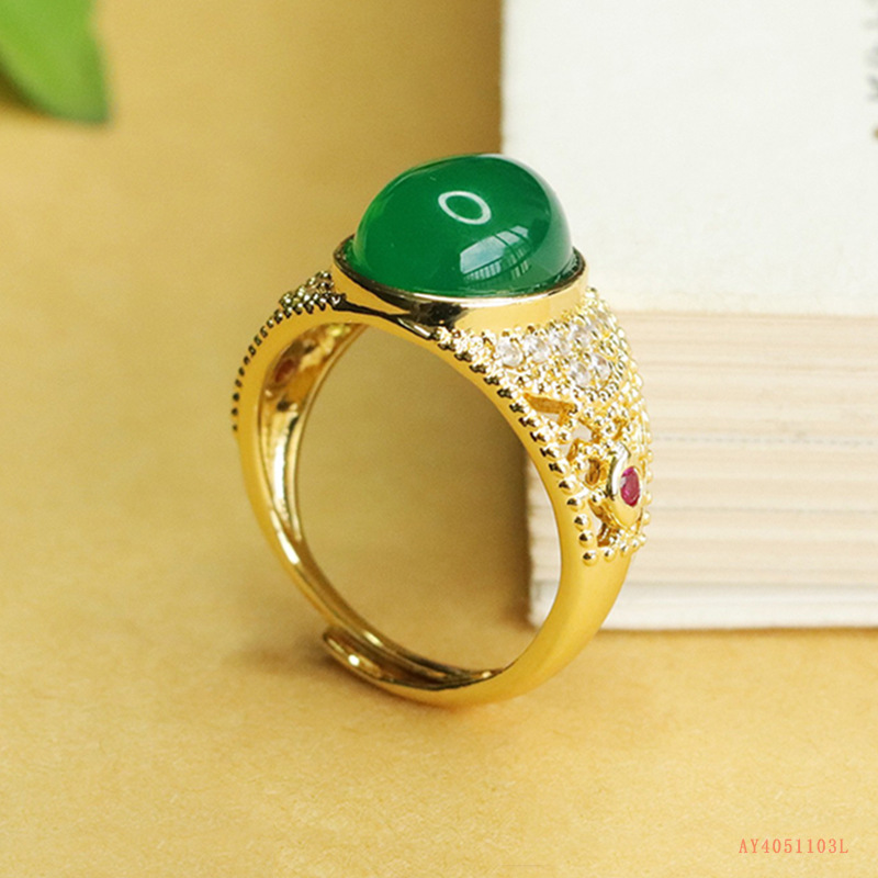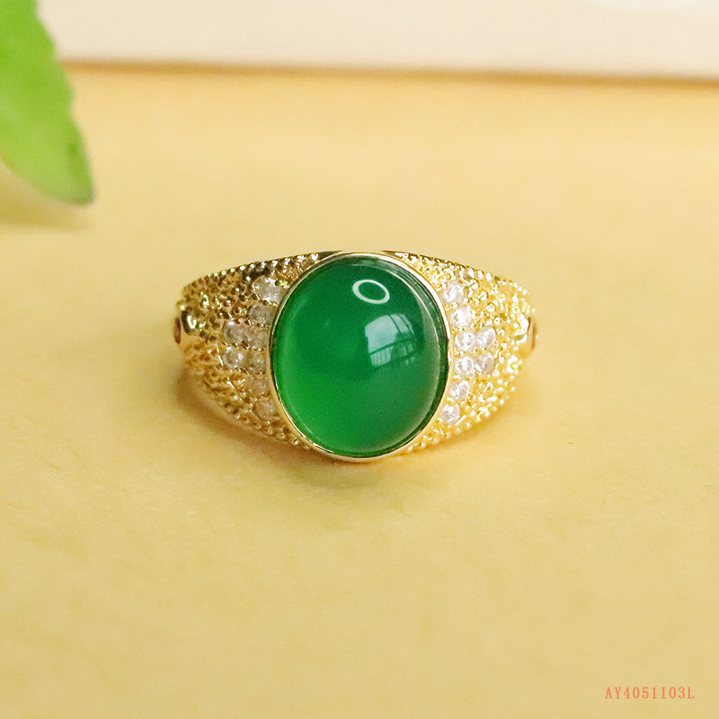 Кольцо из агата Aiyu Ice Green, кольцо из императорского зеленого халцедона, ювелирные изделия в национальном стиле, оптовая продажа, дропшиппинг S4051103L