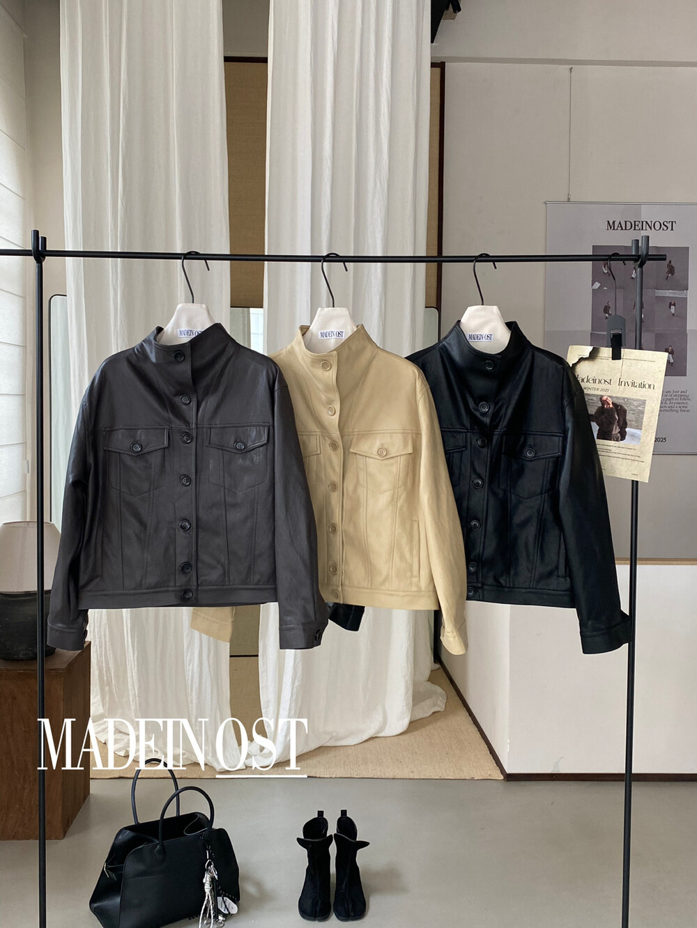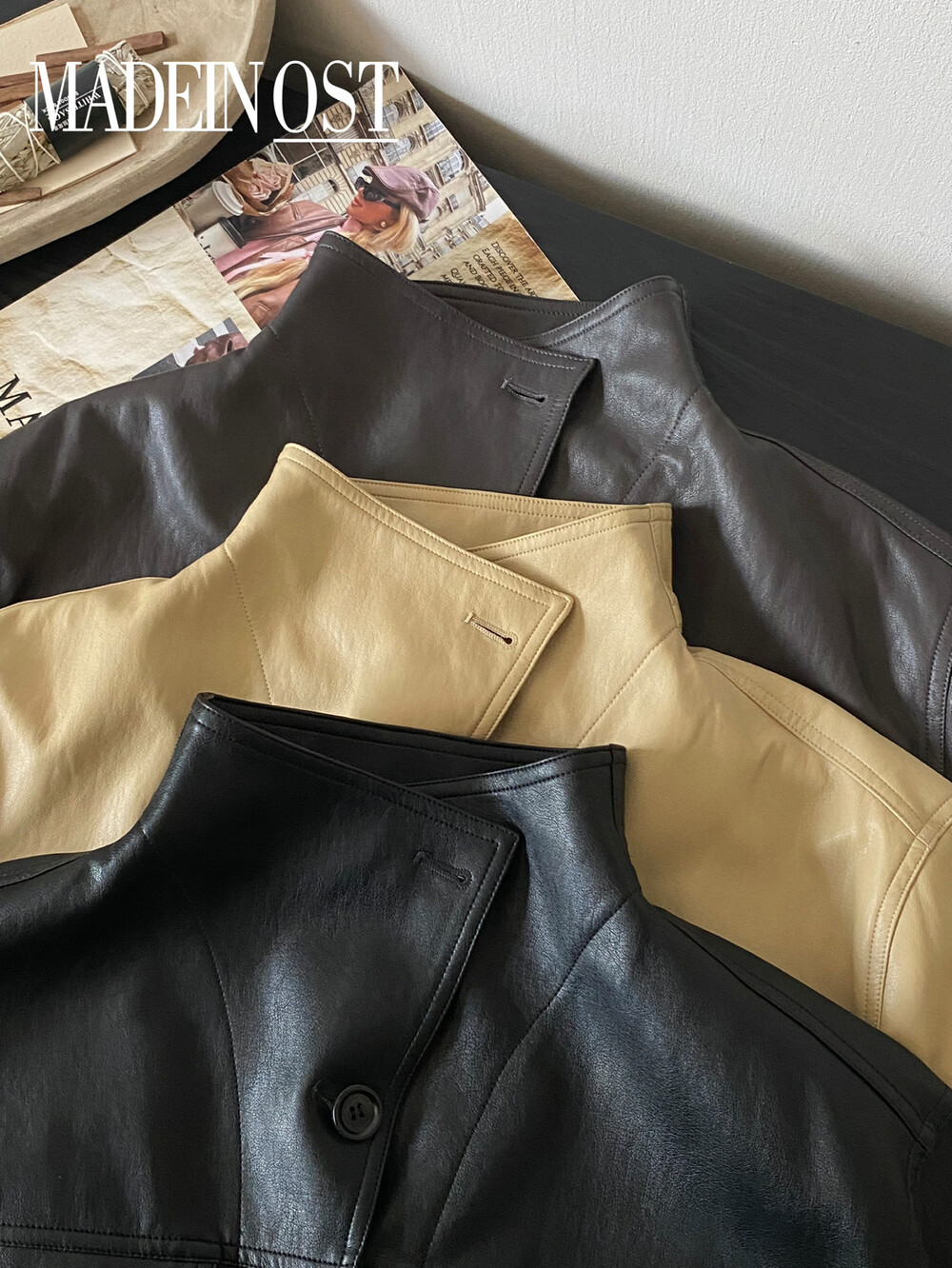 Новая короткая куртка из искусственной кожи с воротником-стойкой и пуговицами в скандинавском стиле, коллекция Весна-Осень 2026.