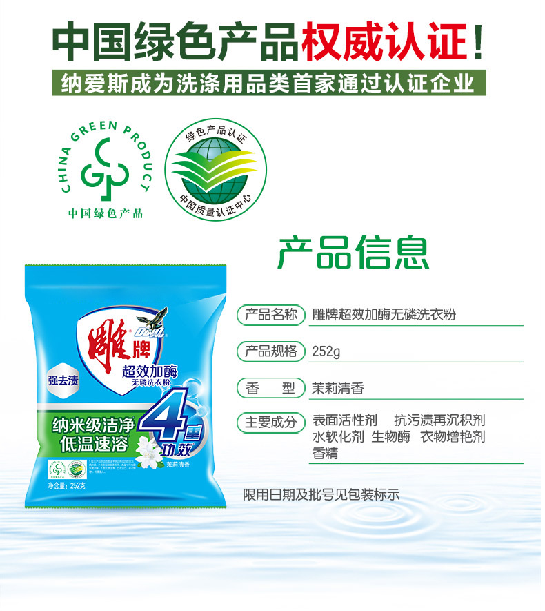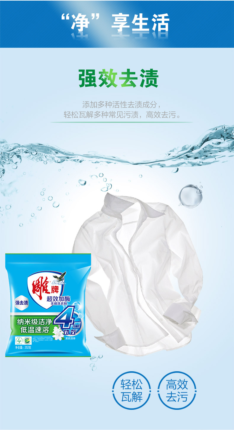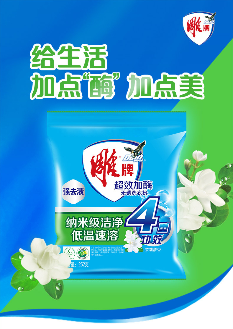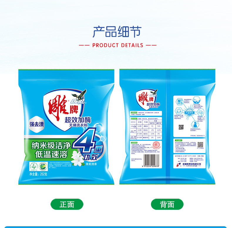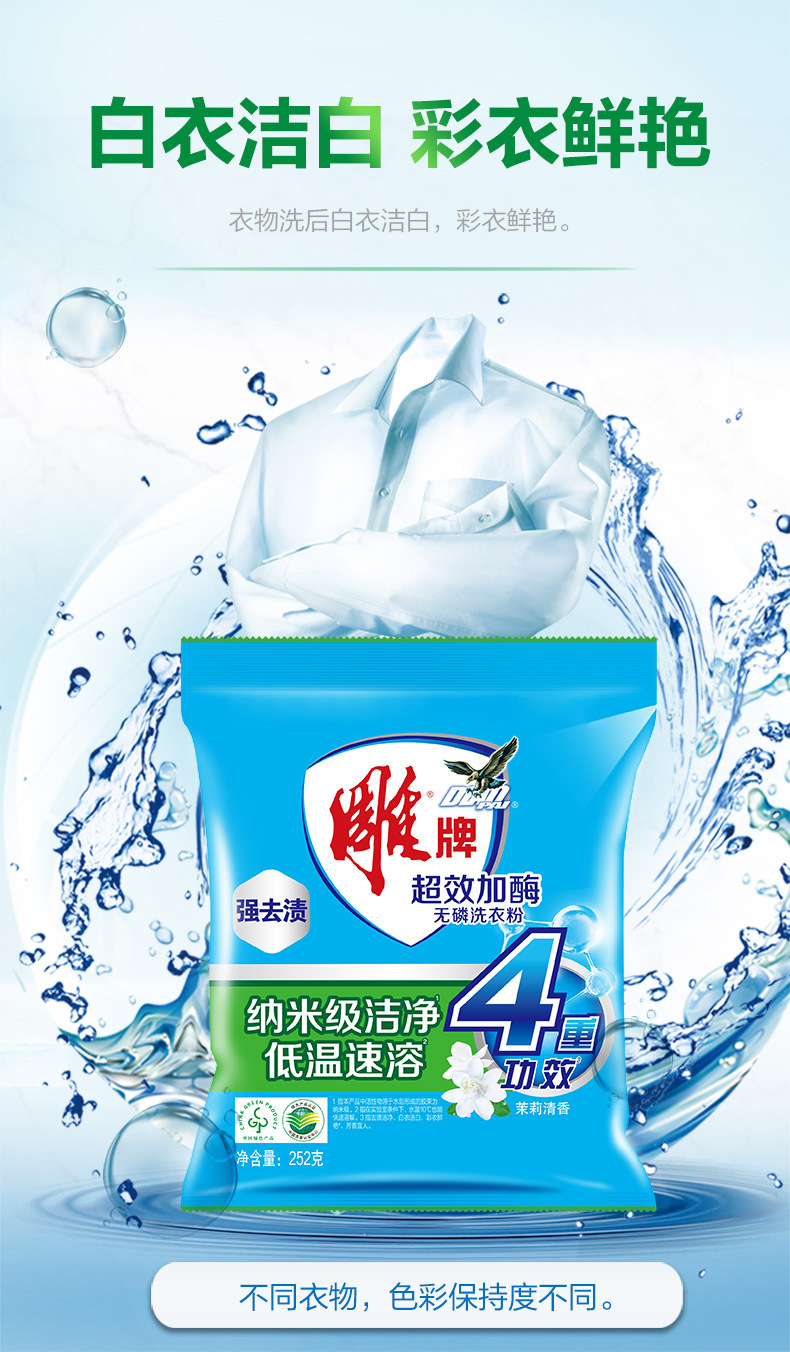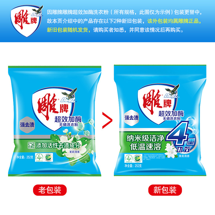 Бренд Diao стиральное средство суперэффект плюс фермент 252 г пакетик без фосфора глубокое удаление пятен чистка бытовая охрана труда оптовая продажа подлинная