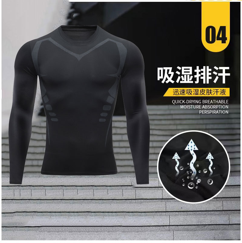 Спортивные колготки Мужская летняя быстрюхая футболка с высокой упругой компрессионная тренировочная одежда дышащая спортивная одежда с длинными рукавами