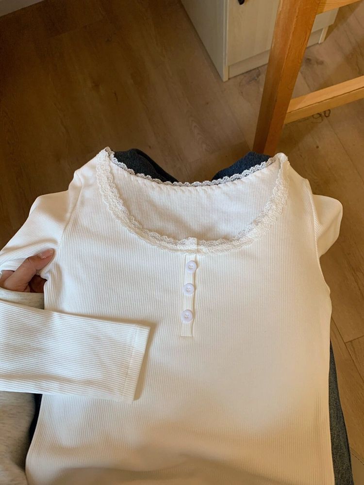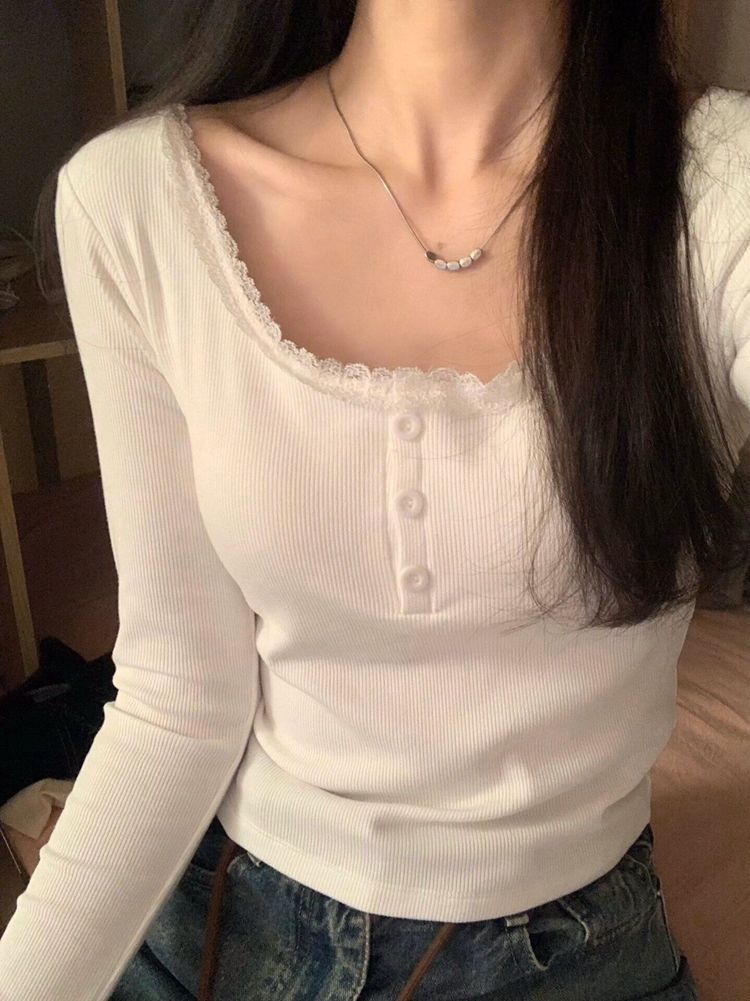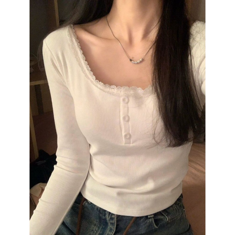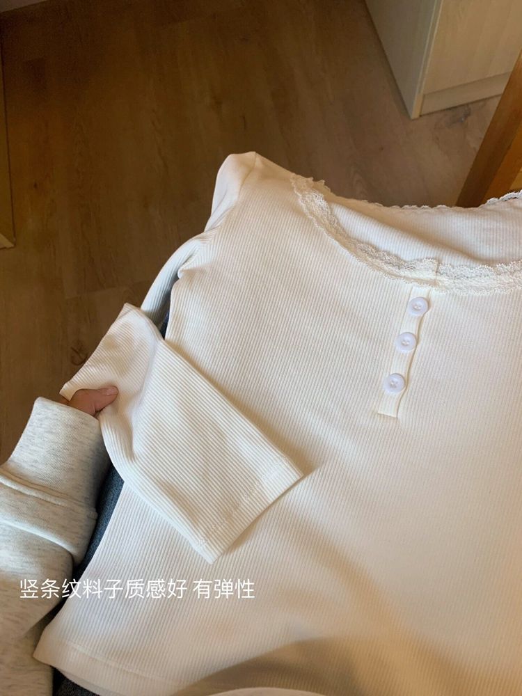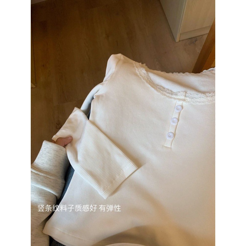 [250 г 2 × 2 удобный бархат] Кружевная сшитая пуговица с круглым вырезом, нижняя футболка с длинными рукавами, тонкий топ