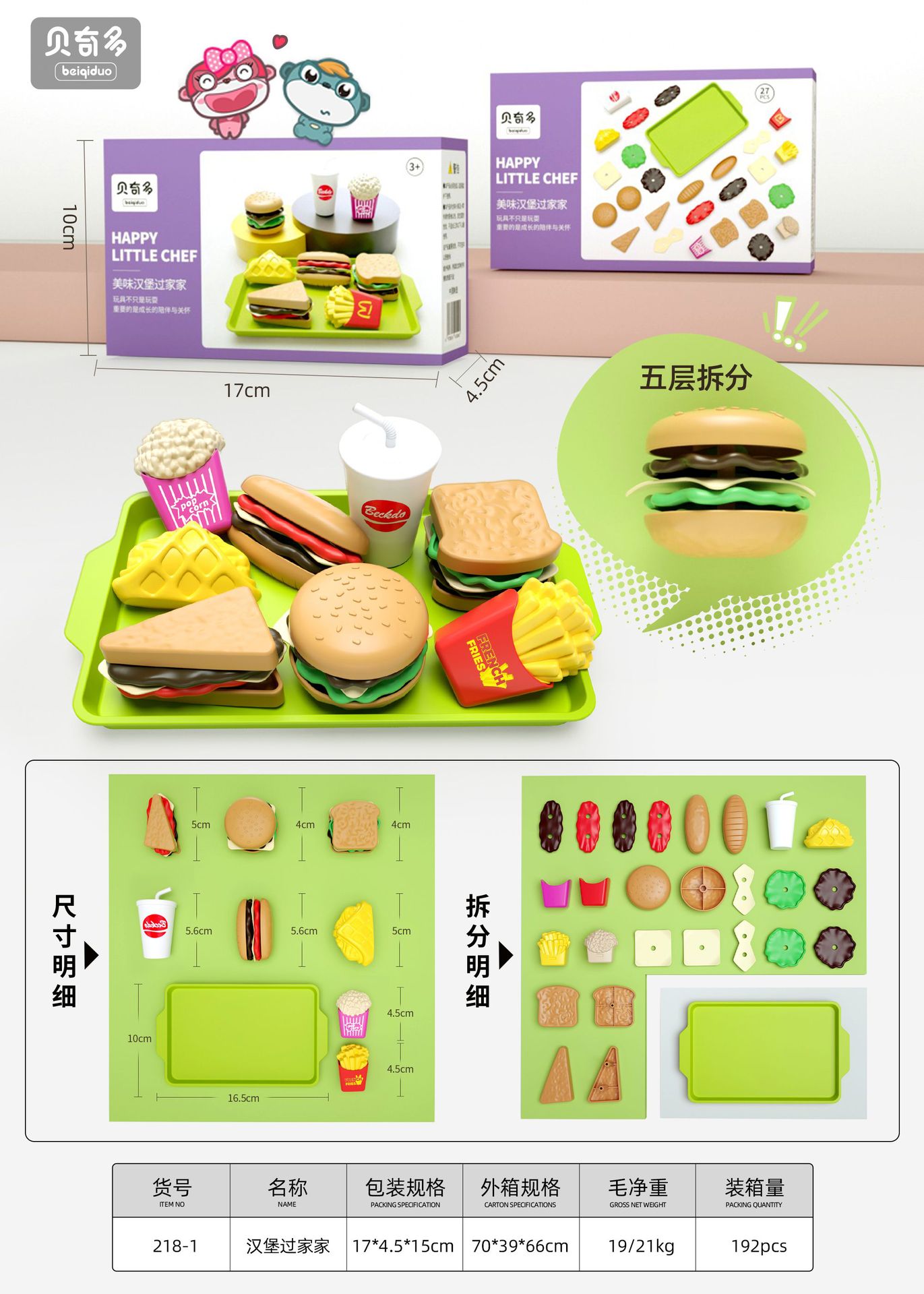 Гамбург 9-Китайский [Цветная коробка]; Гамбург набор из 9 предметов-английский [цветная коробка]; Набор из 8 гамбургеров [в мешках]