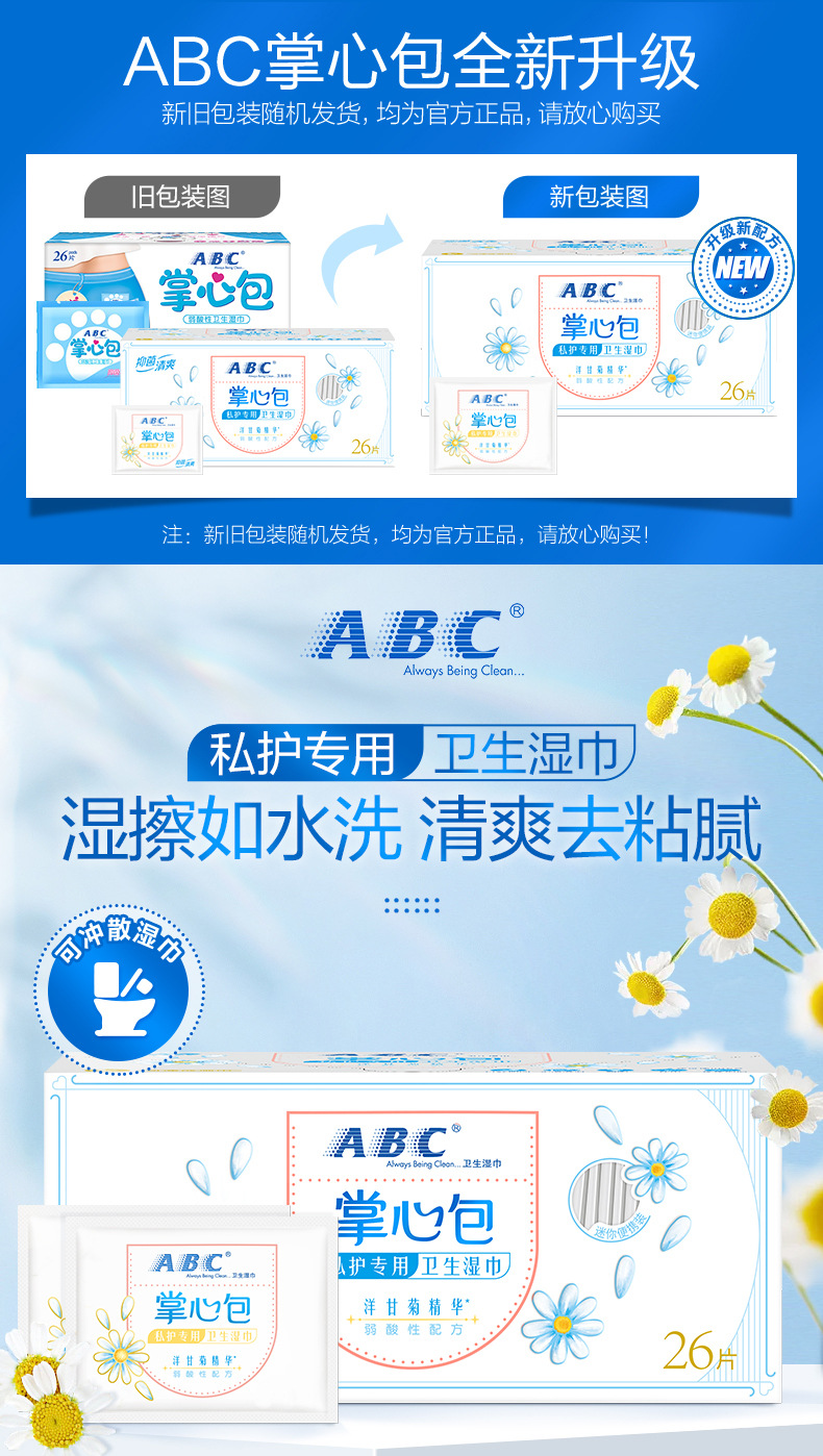 [Подлинный] ABC гигиенические салфетки ладони пакет 26 таблеток RM01