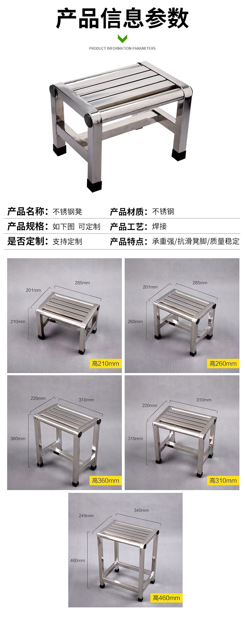 Квадратный табурет из нержавеющей стали, водонепроницаемый табурет для ванной, табурет для сбора овощей, нескользящий табурет, бытовой квадратный табурет, утолщенный низкий табурет
