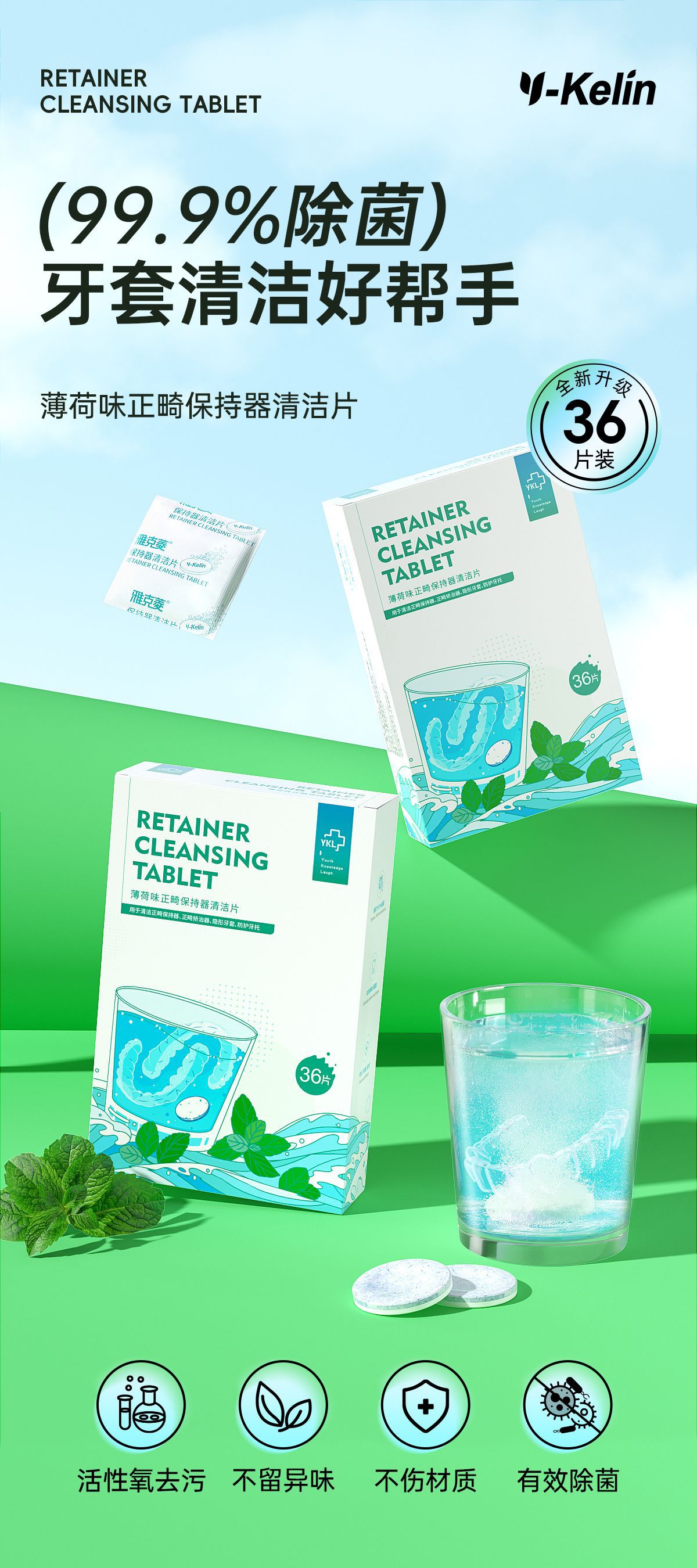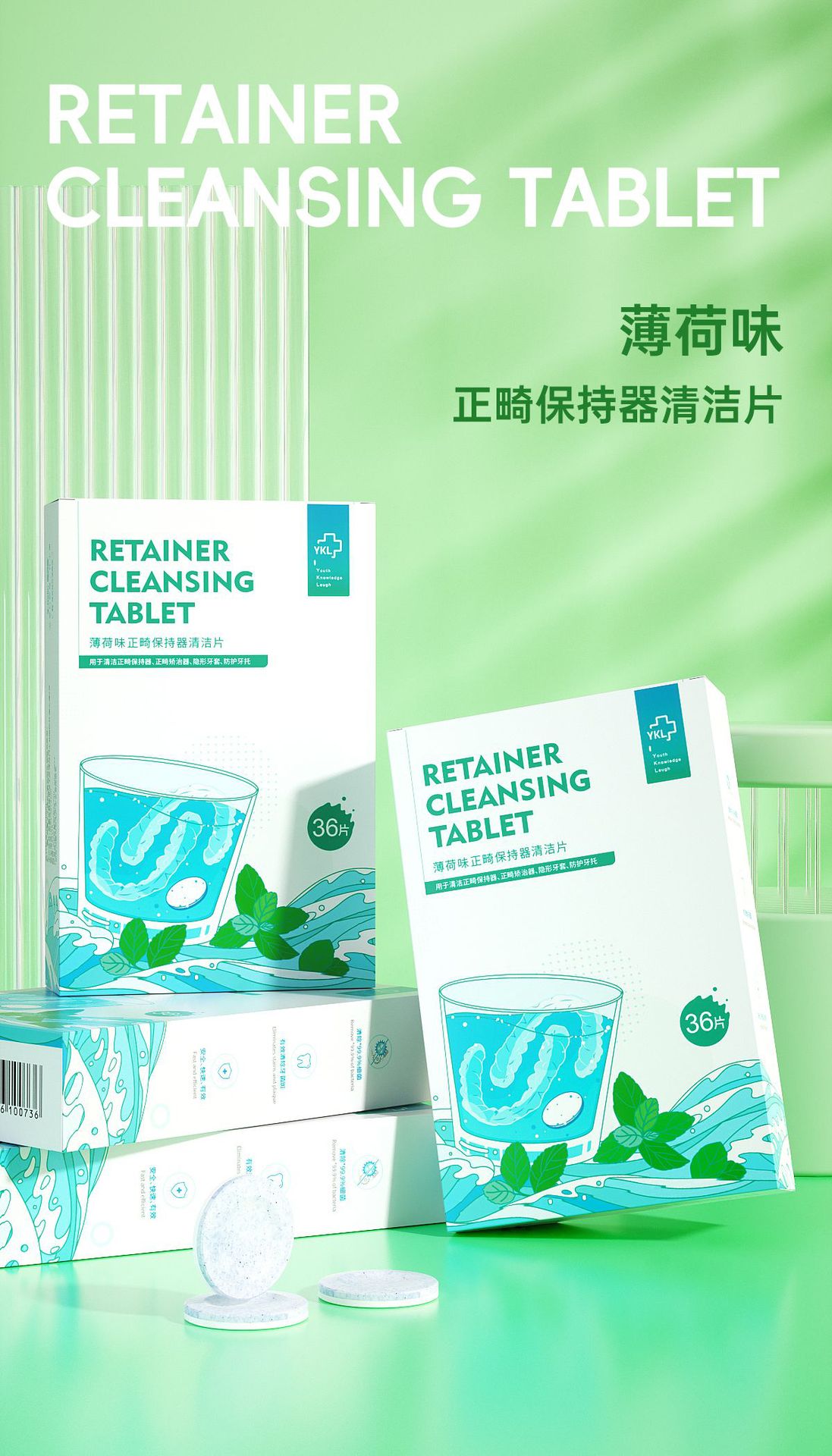 Таблетки для чистки ортодонтических ретейнеров Jacquelin, 36 штук, мятный вкус, удаление пятен, новая улучшенная формула