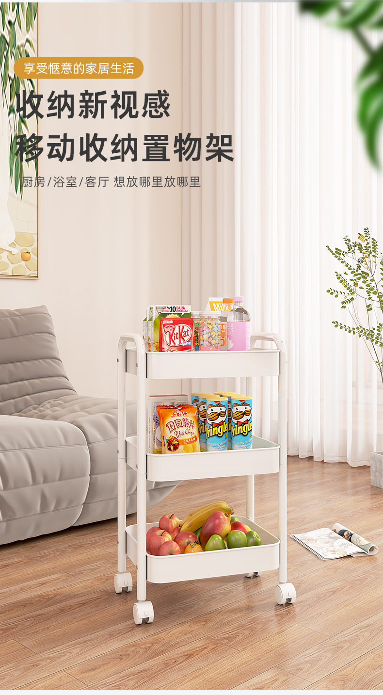 Многоярусная металлическая полка для хранения, напольная мобильная подставка для закусок, подходит для кухни, гостиной, ванной и туалета.