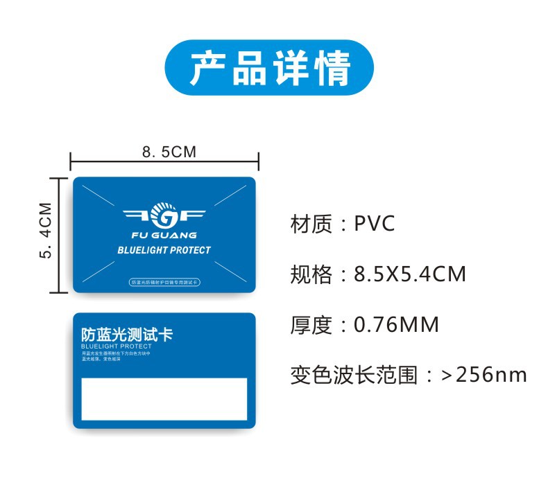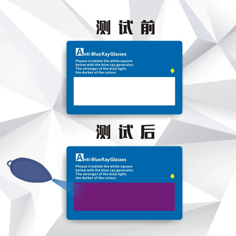 0,76 мм ПВХ материал линзы анти-сине-фиолетовый свет тестовая карта эксперимент по блокировке синего света