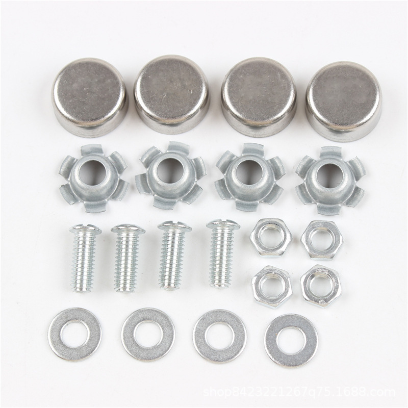 每套包含4个盖子,4个底座,4个螺丝,4个螺母,4个平垫