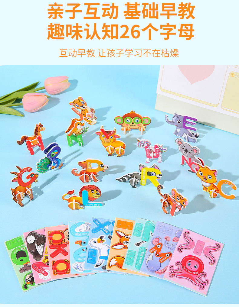 Трехмерные животные головоломки дети веселые буквы творческие diy игрушки для малышей раннего обучения ручная сборка головоломок оптом