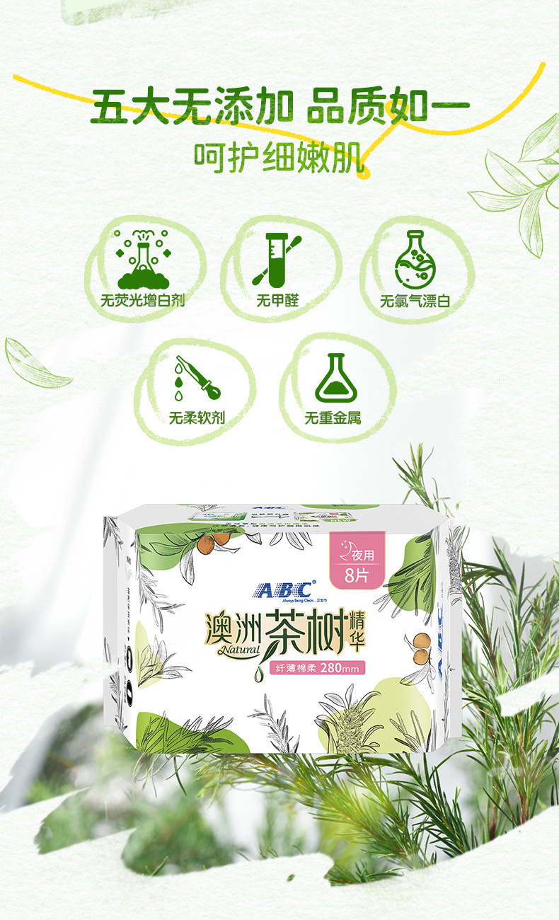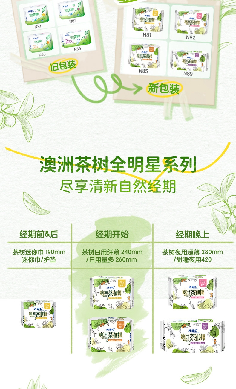 [Подлинный] ABC Pro Liwei Ночной тонкий хлопчатобумажный поверхностный слой гигиенических салфеток 8 ломтиков N82 (включая австралийское чайное дерево